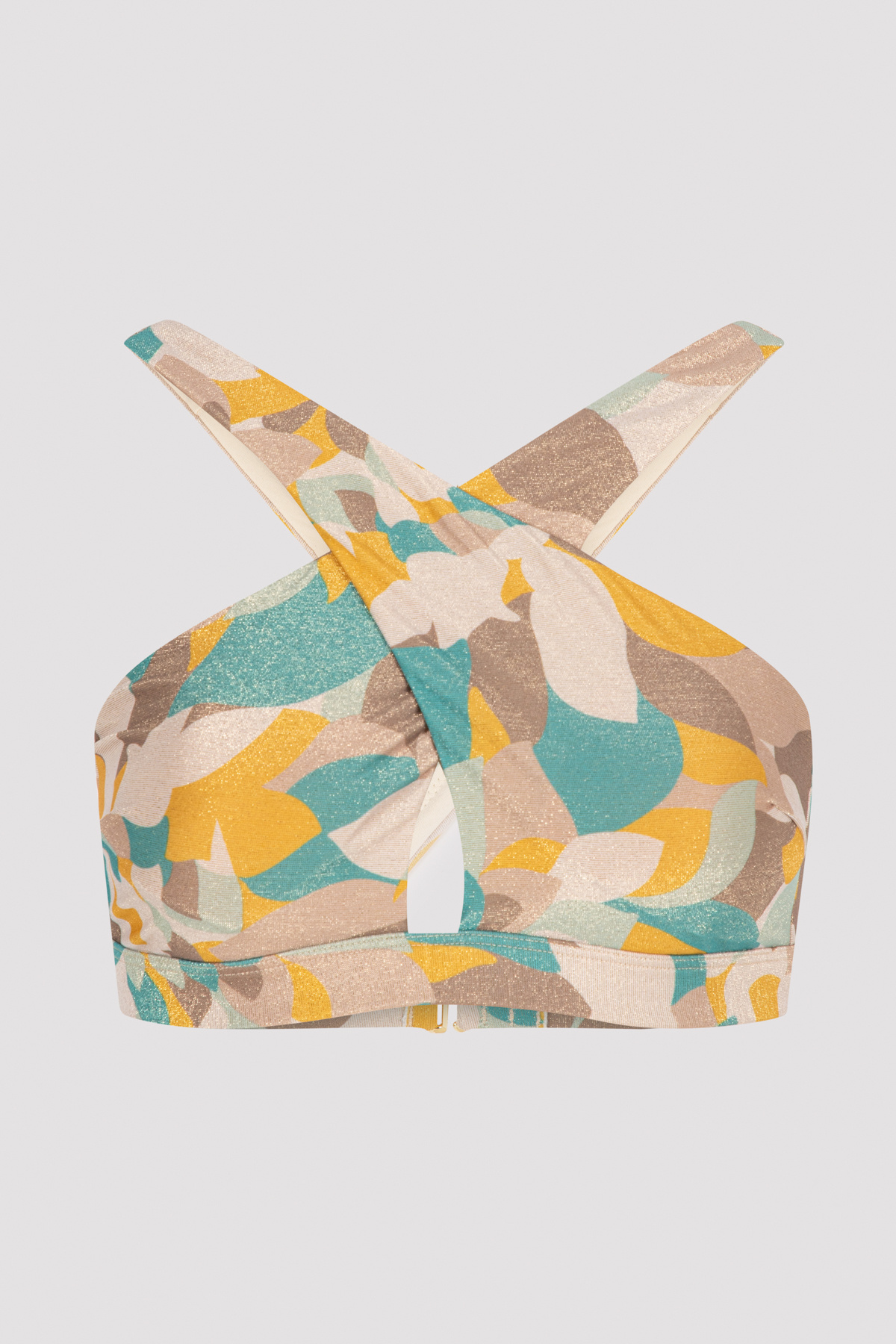 Sabit askıları bulunan, çıkarılabilir kapları ve balensiz yapısıyla tatilde rahat ve konforlu hissettiren, halter modeliyle şık ve çekici görünen Merry Halter bikini üstü.