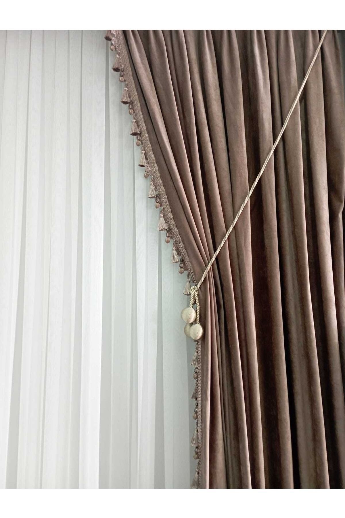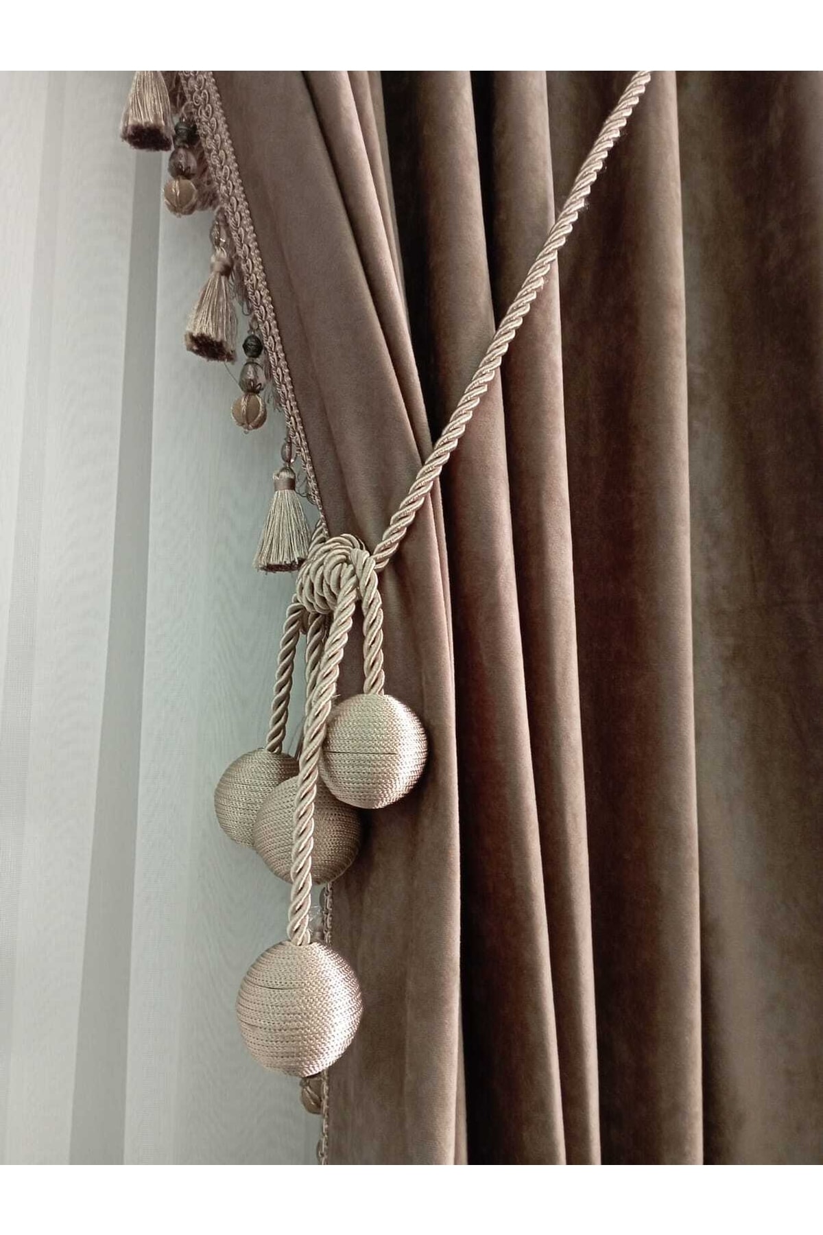Birinci kalite flos iplikten yapılmıs toplam kordon uzunluğu 300 cm perde toplama uzunluğu 150 cm'dir.