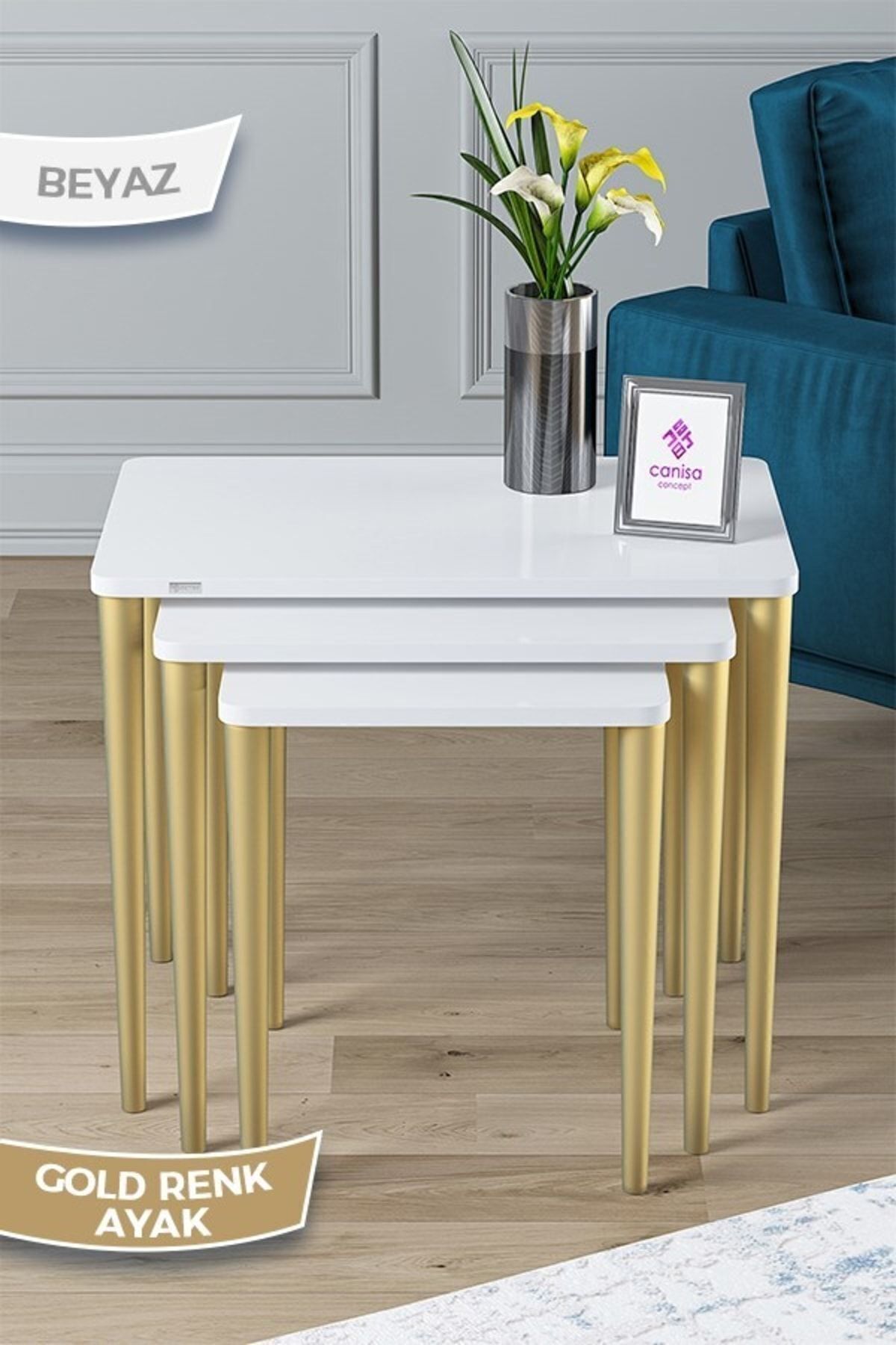 Via Serisi 1.sınıf Mdf Ve Lake Boya, Beyaz 3lü Zigon Sehpa Takımı, Beyaz Gürgen Ayaklar