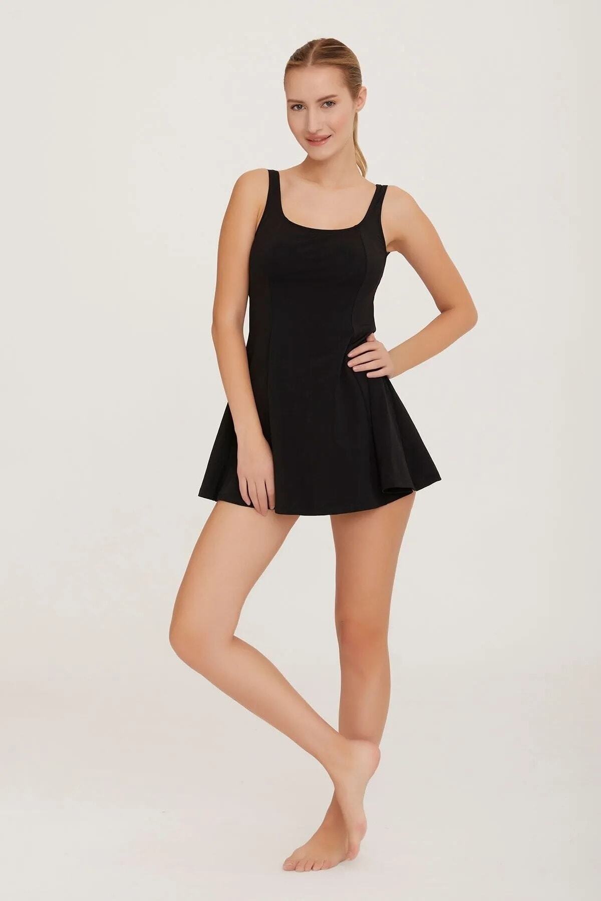 Ürün komple boydan etekli olup, iç kısmında, göğüs kısmına bağlantılı sabit şort mevcuttur.