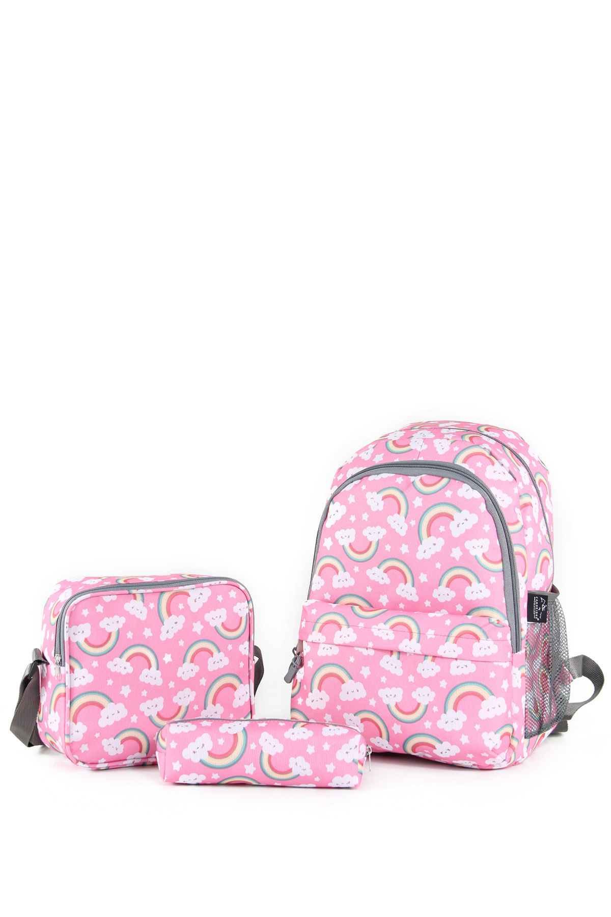 1 adet ilkokul sırt çantası, 1 adet beslenme çantası ve 1 adet kalem çantası bulunur.