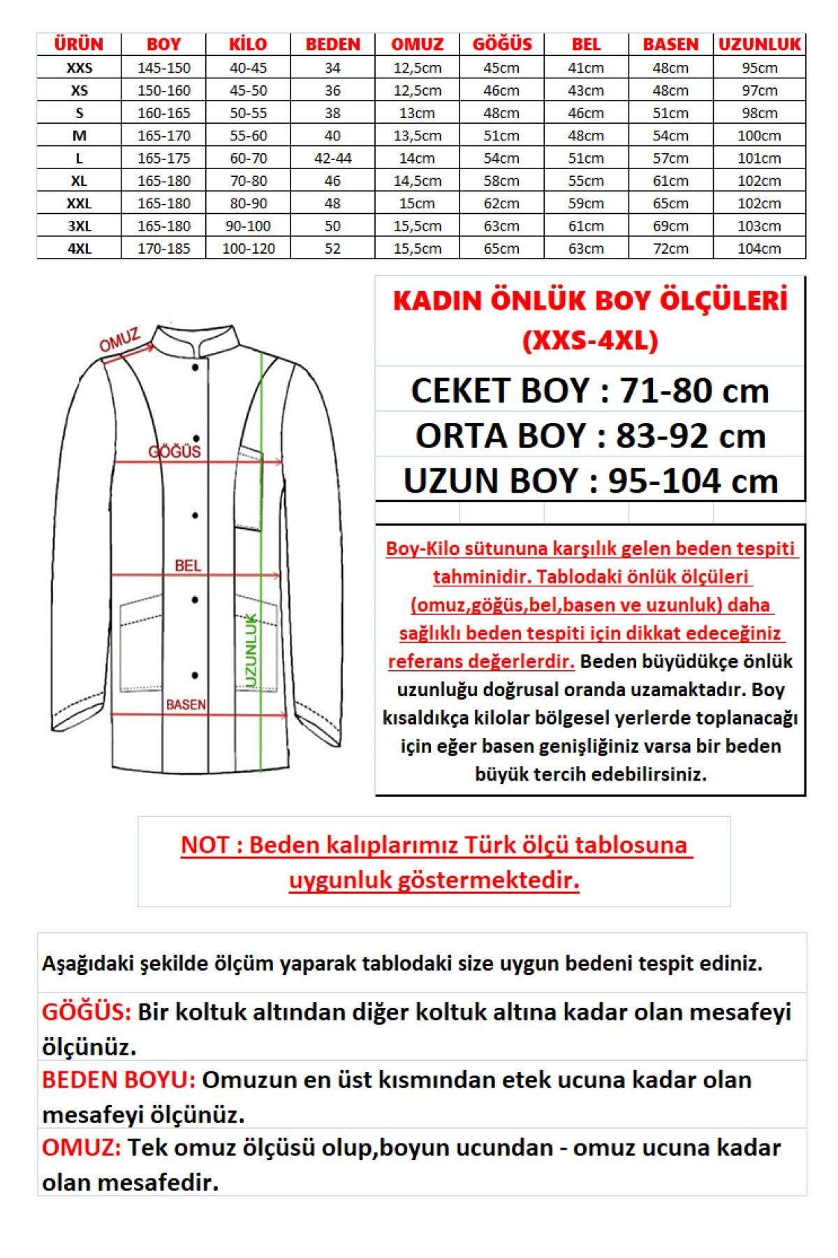 • Beden seçimi yaparken görsellerin sonunda bulunan tahmini beden ölçüsü tablosunu inceleyiniz