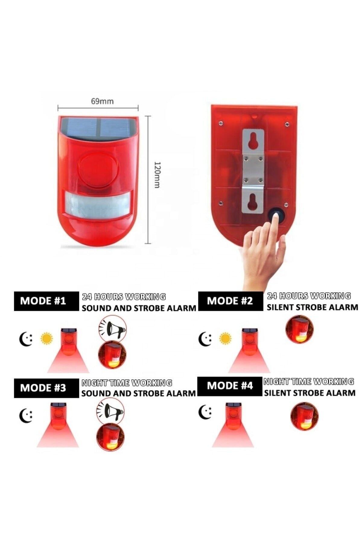 Güneş Enerjili Solar Sensörlü Hırsız Alarmı 129 Desibel Su Geçirmez 4 Mod