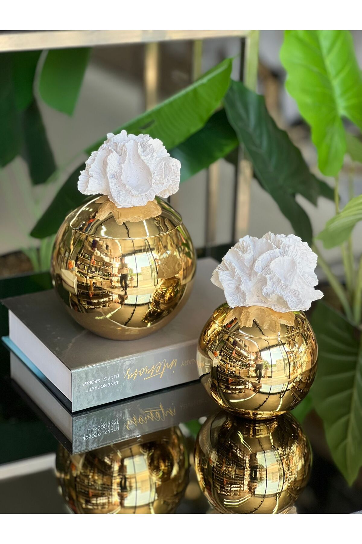 İki adet mercan kutu, farklı boyutlarda ve renklerde olup, dekoratif objelerinizle uyum sağlar