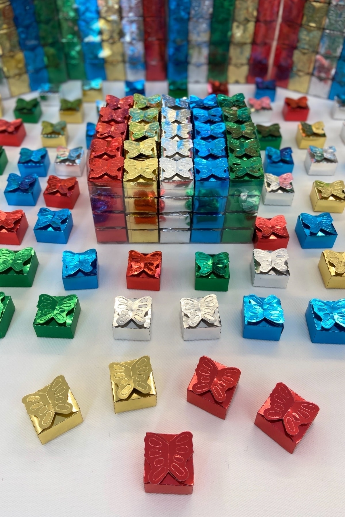 Karışık Renk Kelebek Desen Hediyelik Dağıtmalık Kutu Kına.