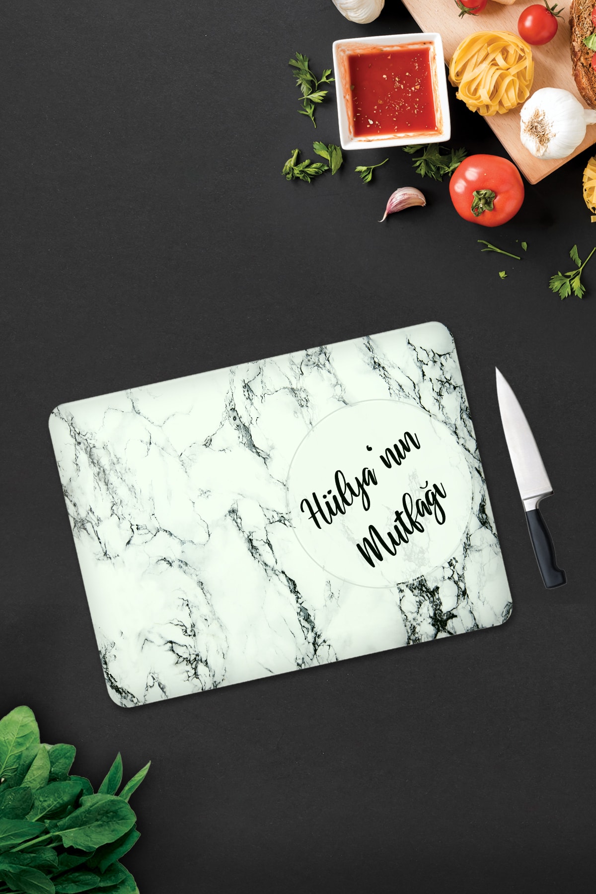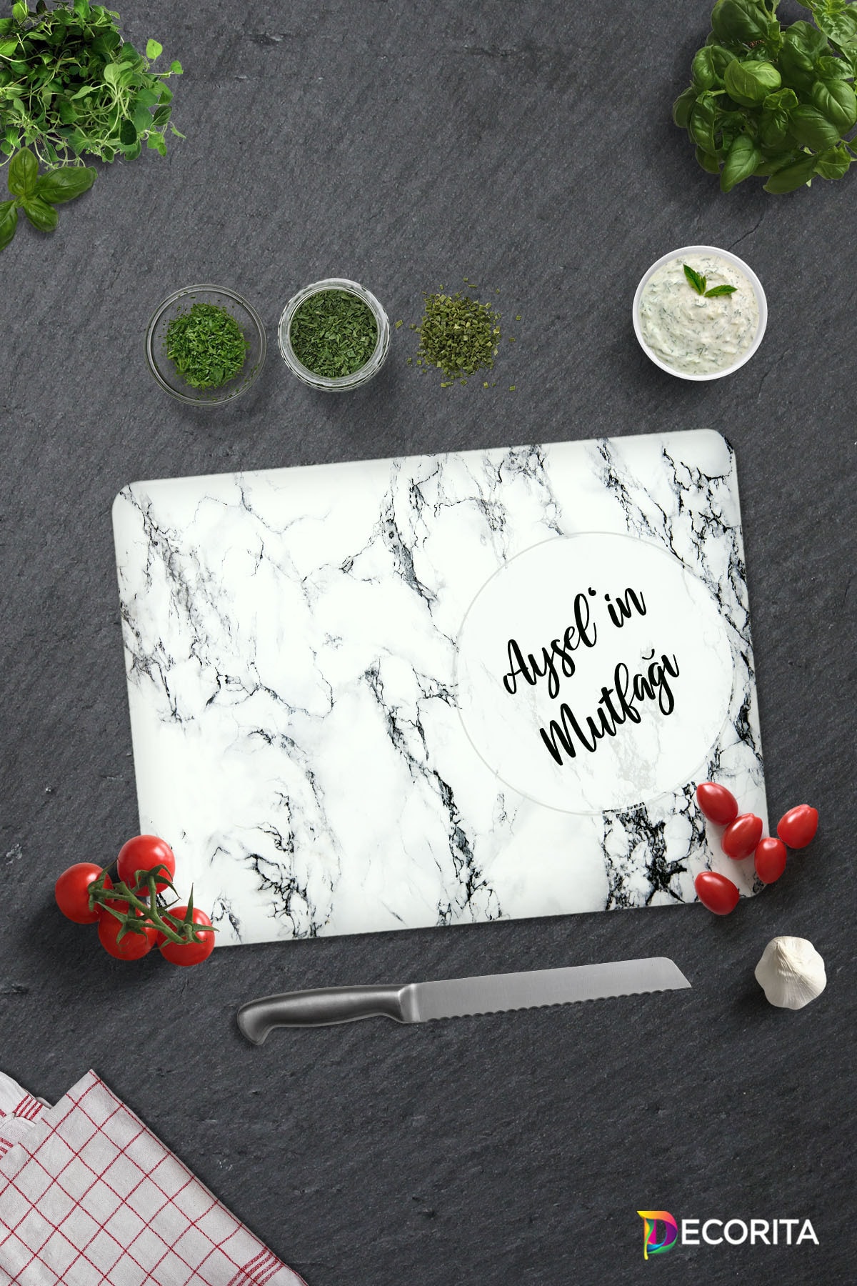 Cam Kesme Tahtası Cam Kesim Tablası Beyaz Mermer Görünümlü 30cm x 40cm