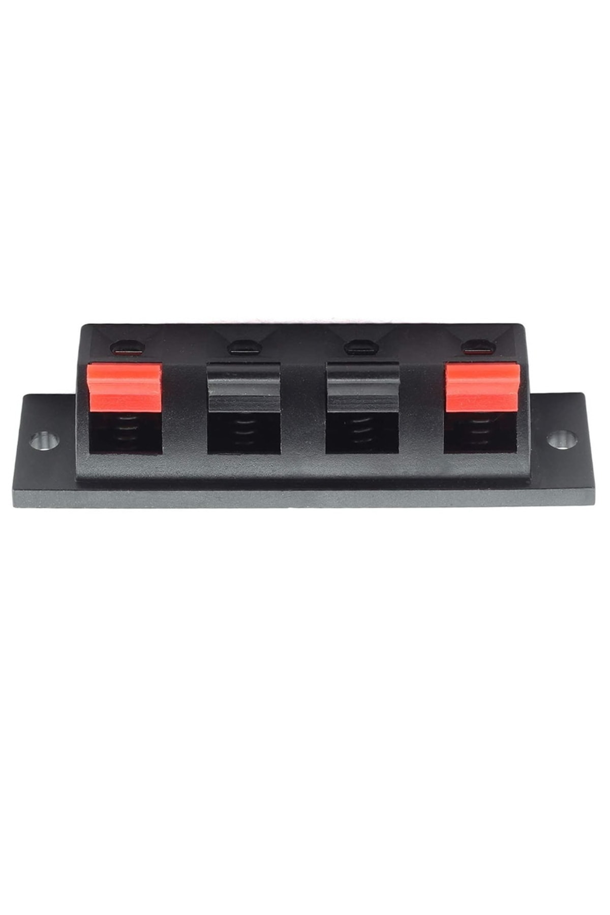 4lü Hoparlör Terminal Soketi Panel Montaj Tip Yaylı Speaker Ses Kablo Bağlantı Birleştirme Konnektörü AC 50V 3A 24-16 AWG Hoparlör bağlantı soketidir. Maksimum AC 50V 3A taşıma kapasitesi vardır. 24/16 Awg kablo bağlantı için kullanabilirsiniz. Yaylı mandal soketler ittirilerek soket deliği açılır. Kablo içerisine sokulduktan sonra mandal bırakılır. yaylı yapı kabloyu sıkıştırır. Lehim yapmadan hızlıca kabloları bağlayıp ayırabilirsiniz. Darbe sıcaklık ve nem gibi etkilere karşı koruma sağlar. Soket mandalları görsel olarak kırmızı siyah renk işaretlenmiştir. Özellikler: Çalışma voltajı: AC 50V