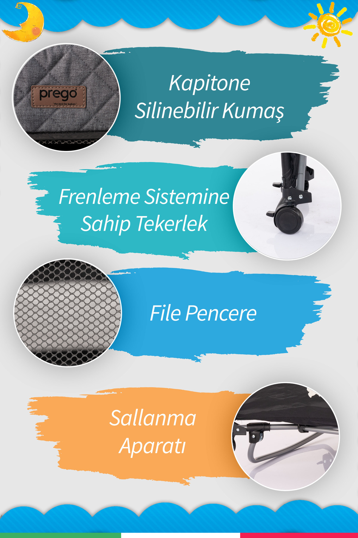 Taşıma çantası sayesinde oyun parkınızı istediğiniz yere taşıyabilir, seyahatlerde bile bebeğinizin eğlencesine devam etmesini sağlayabilirsiniz.