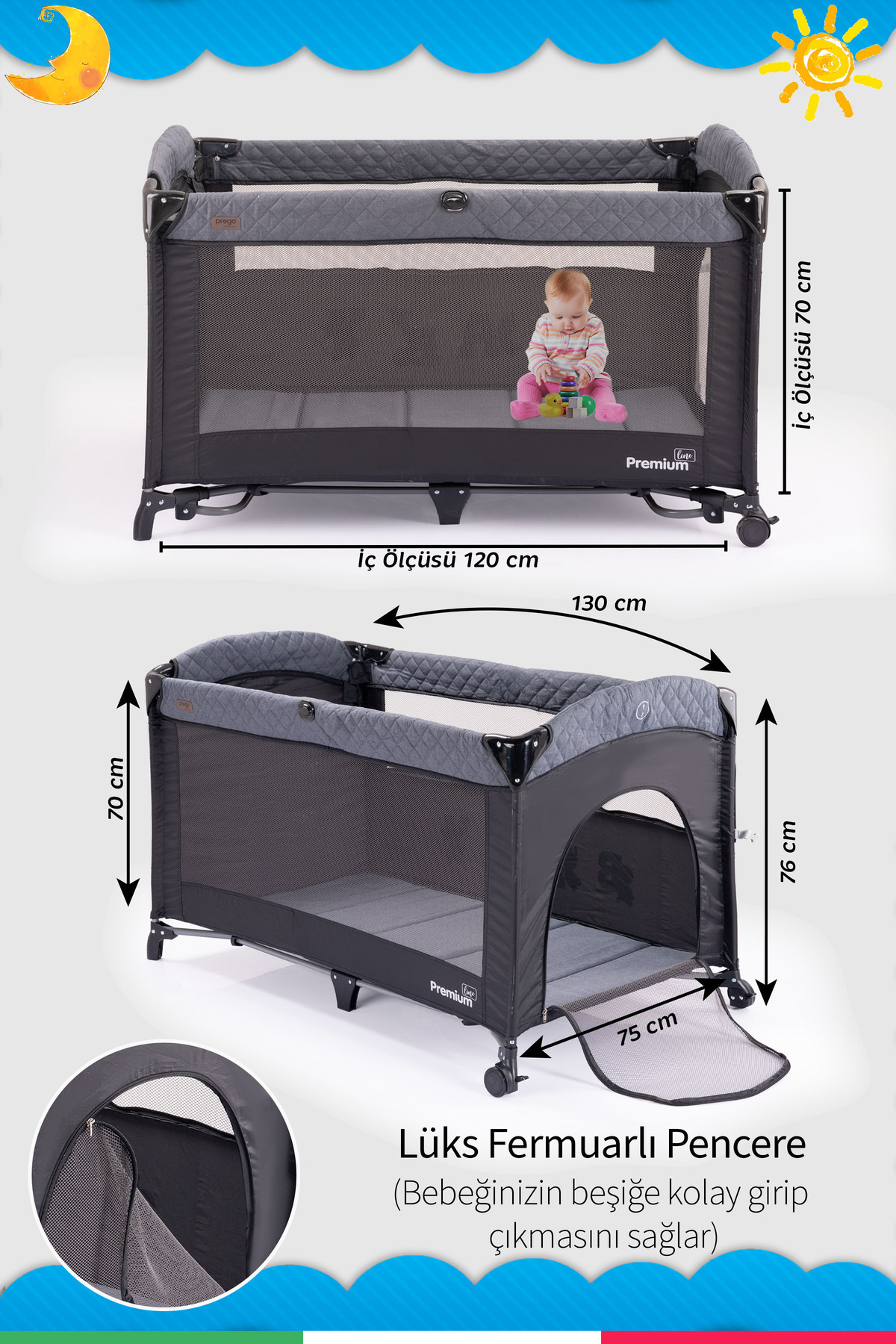 Bebeğinizin konforu düşünülerek tasarlanan premium anne yanı oyun parkı, 70*120 cm genişliğindeki geniş iç hacmiyle bebeğinizin rahatça hareket etmesine olanak tanır.