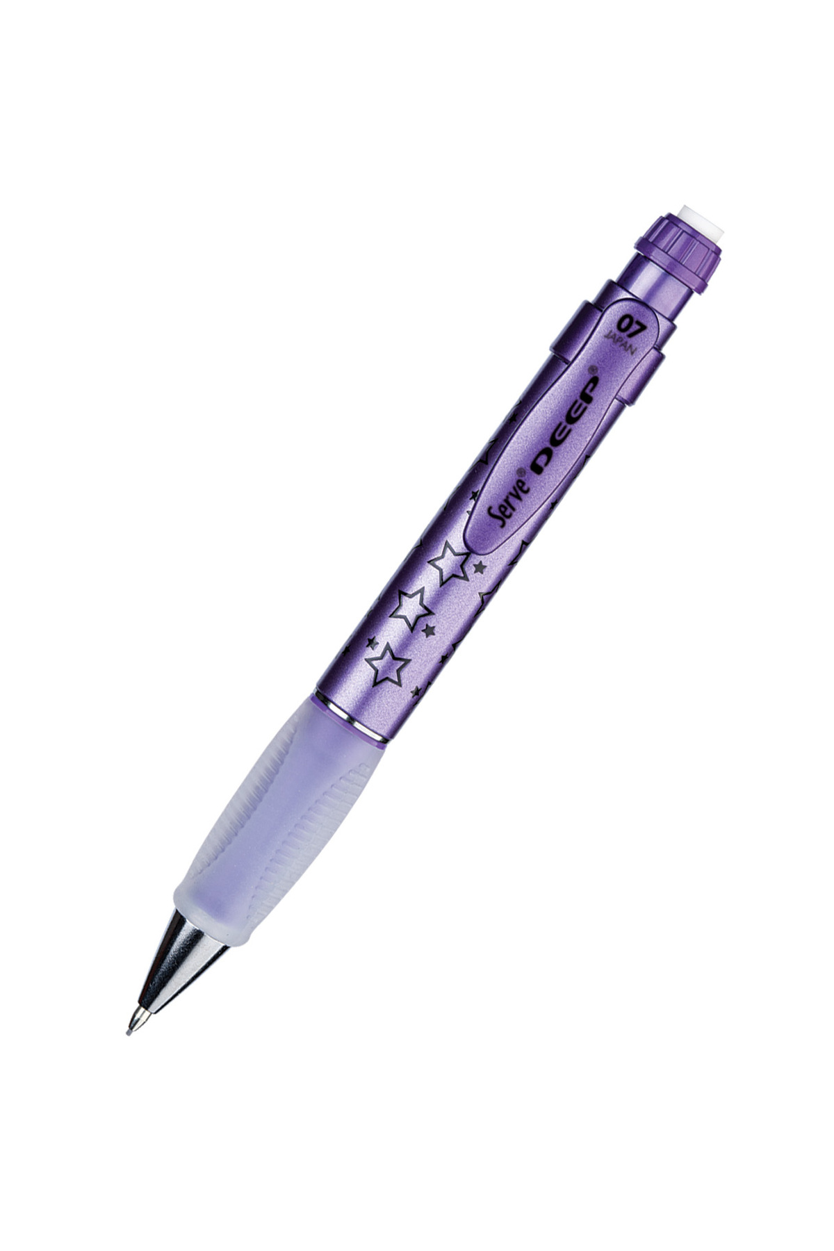 Geniş gövde tasarımlı, yüksek kaliteli mekanik kurşun kalem, desenli metalik renkleriyle Kauçuk grip ile rahat kullanım Çevirince ortaya çıkan büyük boy kaliteli silgi Gizlenebilir metal uç ile güvenli kullanım Japonya'da üretilmiştir 0.7 mm uç kalınlığında 6 desenli metalik renk seçeneği