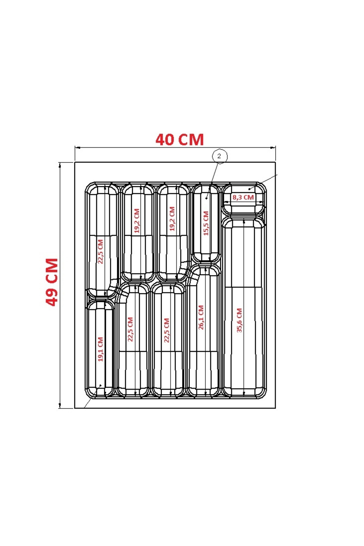 EN 40 CM OLUP DERİNLİK 49 CM ŞEKLİNDEDİR.
