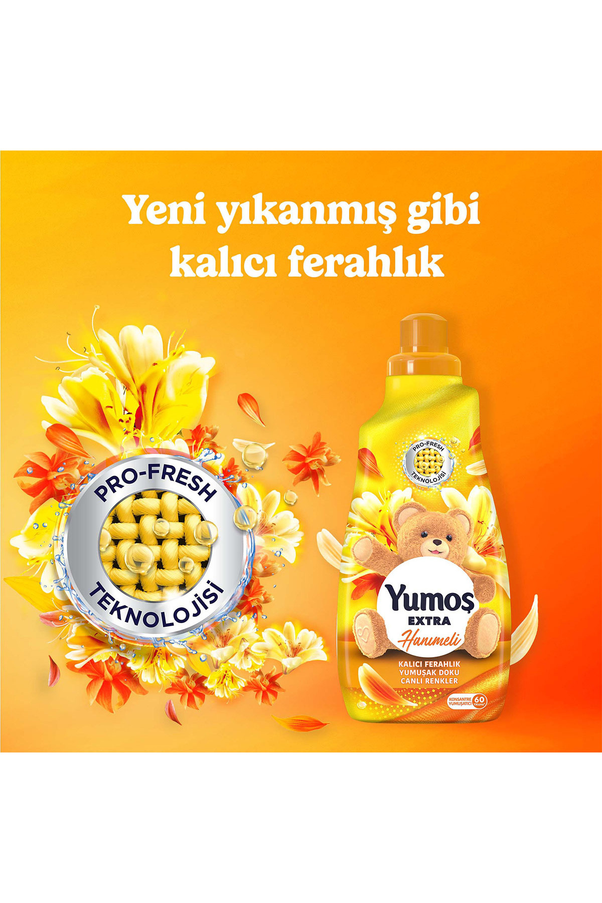 Yumoş Extra’nın uzmanları ile geliştirilen ve içeriğinde bulunan Pro-Fresh Teknolojisi ile giysilerinize yeni yıkanmış gibi kalıcı ferahlık ve efsane yumuşaklık sağlar.