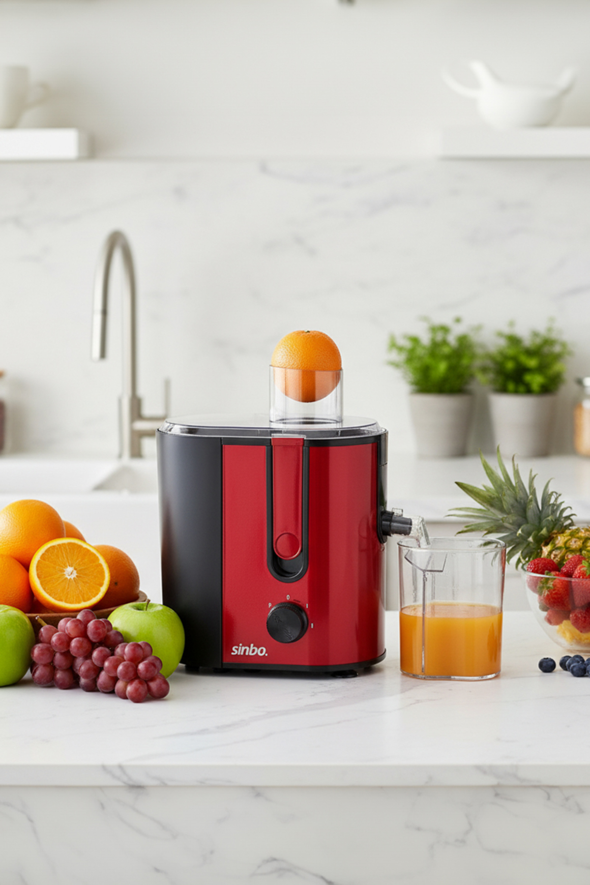 Sinbo meyve sıkacağı, 2 farklı hız kademesi ile meyvelerin besin değerini kaybetmeden istediğiniz yoğunlukta içime hazır hale getirir.