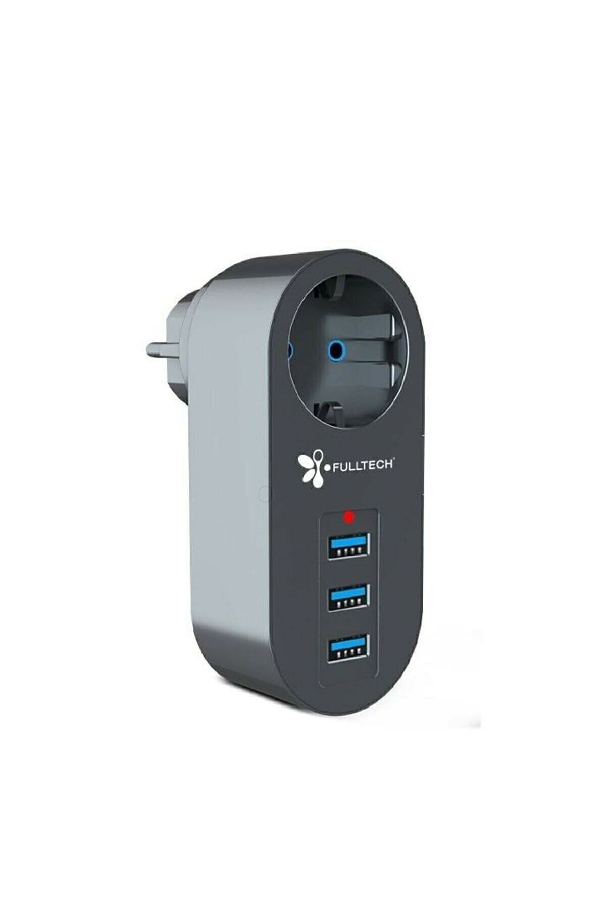 Fulltech Termal Akım Korumalı Tekli Duvar Priz 3 x USB - Akıllı Akım Dengeleme Çocuk Koruması Isıya Karşı Dayanıklı