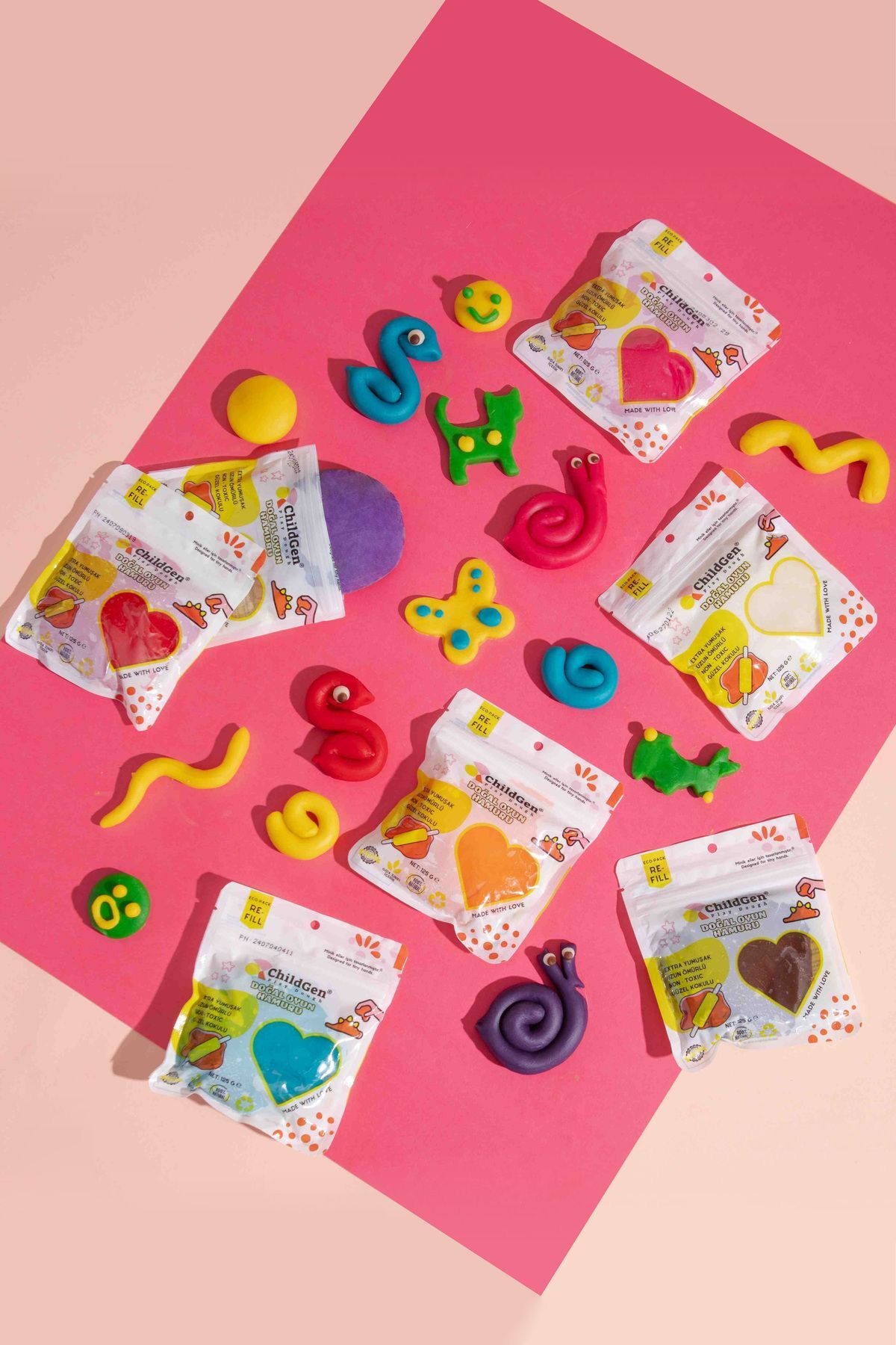 Doğamıza sahip çıkıyoruz çünkü çocuklarımıza bırakabileceğimiz en güzel miras tertemiz bir yeryüzü! Artık ilk siparişinizde ki hamur kaplarınızı atmıyorsunuz, 2. Siparişinizde size özel vakum teknolojisi ile hazırladığımız tamamen gıda uyumlu, %100 geri dönüştürülebilen ve steril paketlere koyulmuş hamurlarımızdan alabiliyorsunuz. Kutularımıza uygun olarak hazırlanan 125 gramlık bu paketlerimiz size teslim edildikten sonra bir önceki siparişinizden kalan kutularına koyup çocuklarımıza veriyoruz Böylece çok daha az atık ile sıfır atık projesine katkı sağlıyoruz hem de çok daha ile hamurlarımıza ulaşabiliyorsunuz Evlerinizde kap yoksa torbalarımız zipli olduğu için tekrar içine yerleştirebilirsiniz. Ayrıca paketlerimiz özel olarak vakumlandığı için çok uzun süre hiç açılmadan da saklama imkanı sunuyor. Oyun hamurunda bir devrim olan bu projemizi hayata geçirmekten büyük mutluluk duyuyoruz. Bu dünya hepimizin ona iyi davranalım. Tamamen doğal malzemelerden uretilmiştir. Ev yapımı ve el yapımıdır. Uzun omurlu ve ıpeksi dokuya sahiptir. Içindekiler