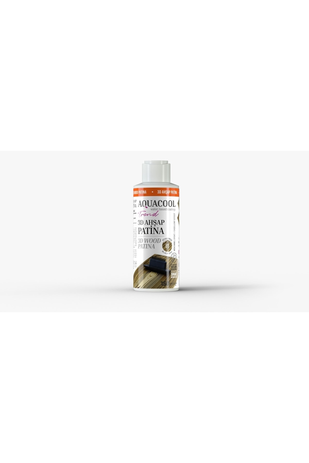 istediğiniz renkte Aquacool Trend Mac boyamızı tüm yüzeye sürdükten sonra kurumasını bekleyip daha sonrasında Aquacool Trend Mac 3d Ahşap Patina boyasını uygulayarak üzerinden budak tarağı ile geçebilirsiniz.