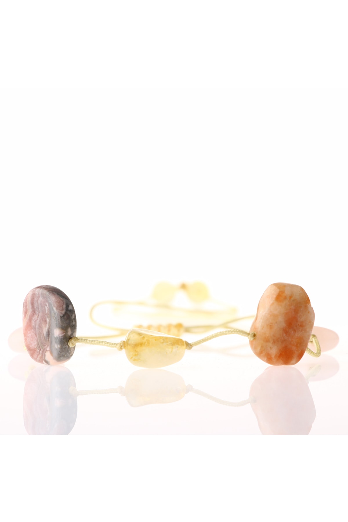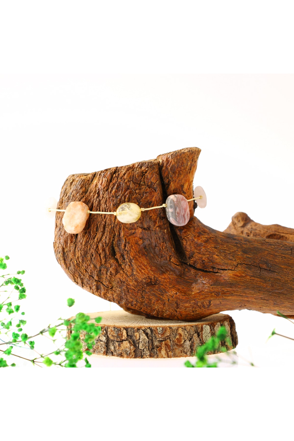 Sitrin, Pembe Kuvars, Güneş Taşı, Rodokrozit Doğaltaş Halhal 6 mm, B931 Her bileğe ve ayağa ayarlanabilir.