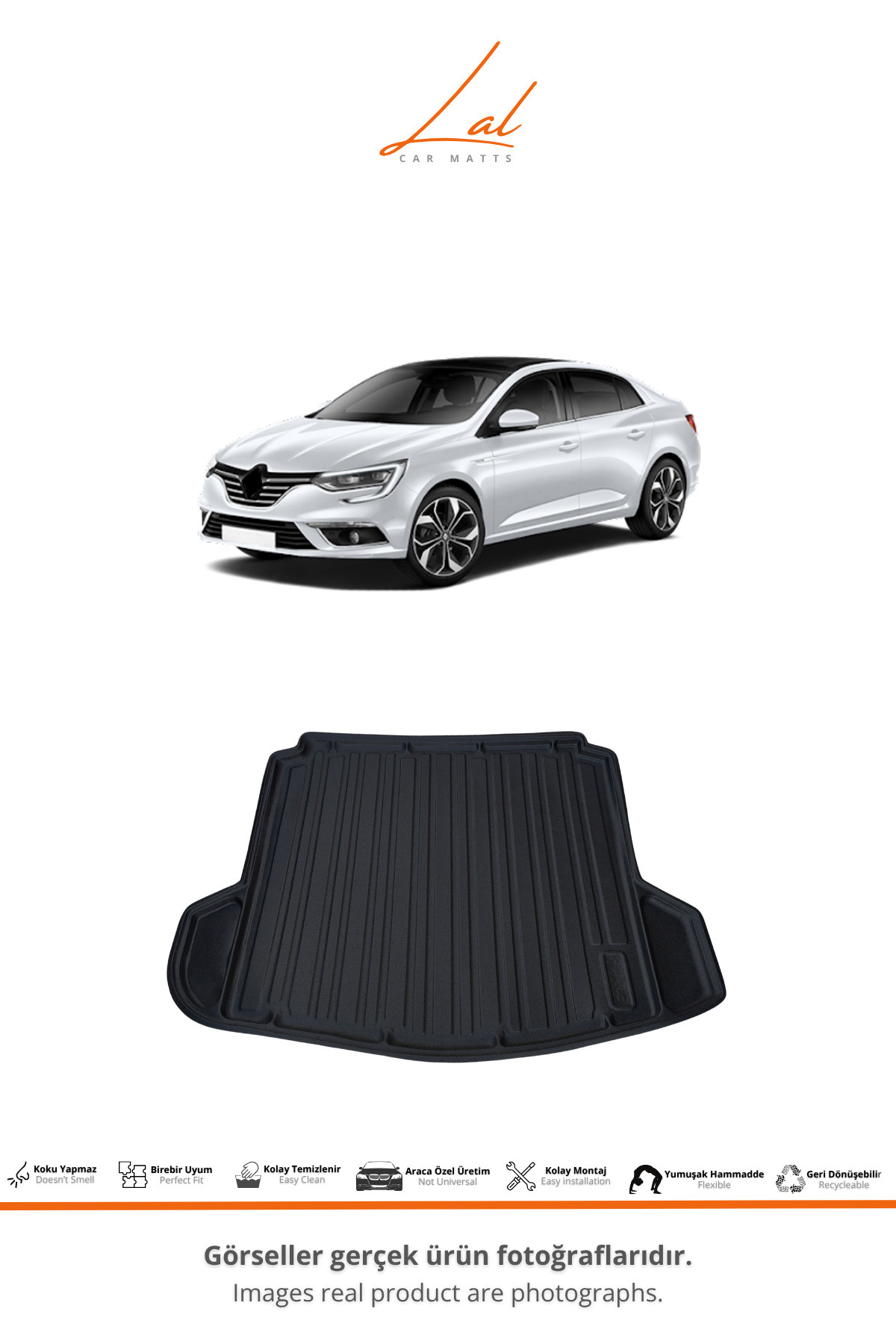 Renault Megane 4 Sedan model araçlarınız için özel olarak tasarlanmış, aracınızın bagaj alanını koruma altına alan 3D havuzlu paspas seti