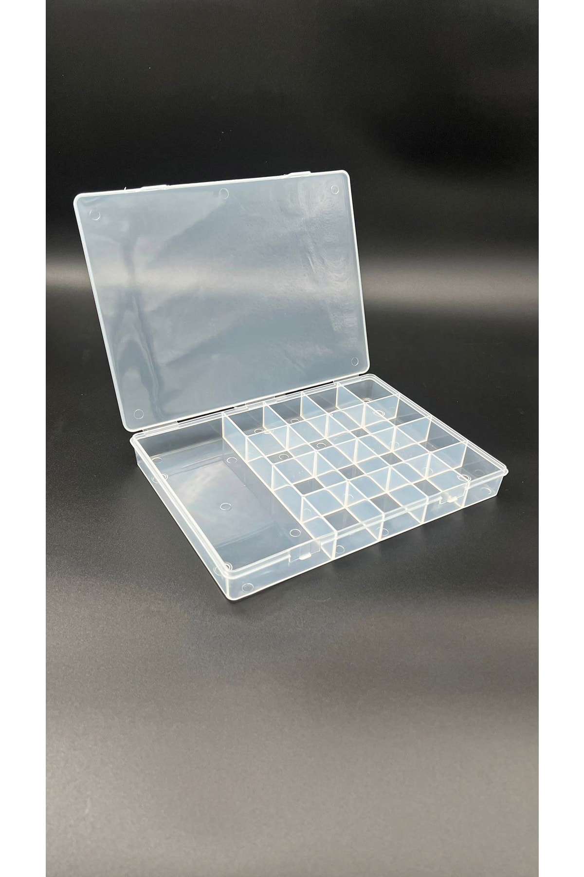 Kaliteli malzemeler ile yapılmış, toksik olmayan, nefis, sağlam ve dayanıklı, hafif taşımak için uygundur. Kutunun boyutu 25,5 x 18,5 cm, bölme sayısı 17, büyük bölmenin boyutu da 18.5 x 8 cm, küçük bölmelerin boyutu ise 4,5 x 4 cm'dir. Kullanım alanları oldukça geniştir. Sadece boncuk kutusu diye bakmayalım, şeffaf olmasıyla beraber hap kutusu olarak da kullanabilirsiniz, hapları görmek için uygundur. Bunun yanı sıra takı malzemelerinizi, boncuk çeşitlerinizi, küçük eşyalarınızı koymak için vs. Kullanabilirsiniz. Her türlü taş ve malzemelerinizi rahatça kullanabilirsiniz. Plastik olduğundan kırılma gibi bir olasılığı yoktur. Her türlü küpe, yüzük, takı vs saklamada kullanabilirsiniz.