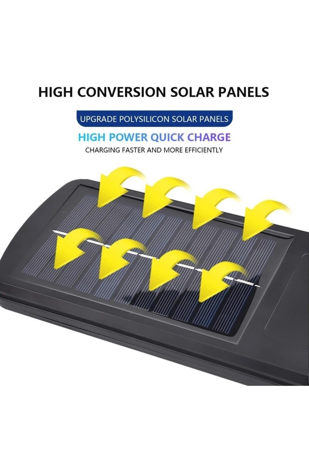 100 Ledli Güneş Enerjili Kumandalı Hareket Sensörlü Solar Dış Mekan Bahçe Lambası Bahçe balkon teras gibi dış mekanlarınız aydınlık ve dekoratif olması için güneş enerjili solar bahçe aydınlatma – solar lamba. Solar güneş enerjili bahçe aydınlatmanız sabahleyin güneş enerjisi ile kendini şarj eder , gece olunca sensörü sayesinde otomatik yanar. Balkonda , bahçede , pencerede , terasta kabloya gereksinim duymadan kolayca kullanabilirsiniz. PIR sensörü &CDS gece sensörü ışık parlaklığını ve insan hareketini otomatik olarak algılar Su geçirmezlik özelliği vardır Tüm dış mekan kullanımına uygundur Ürün Ölçüsü 13 cm * 37 cm Specification: Material: ABS Highlight Delay: 20s Working Time: 12h Illumination Angle: 120° Lumen: 1500 Lighting Areas: 150? Solar Panel: 5.5V/2.5W Monocrystalline LED Qty: 100LED Built-In Battery: Built-In 2 X 18650 Rechargeable Lithium Batteries , 3.7V, 2200mAh Paket İçeriği
