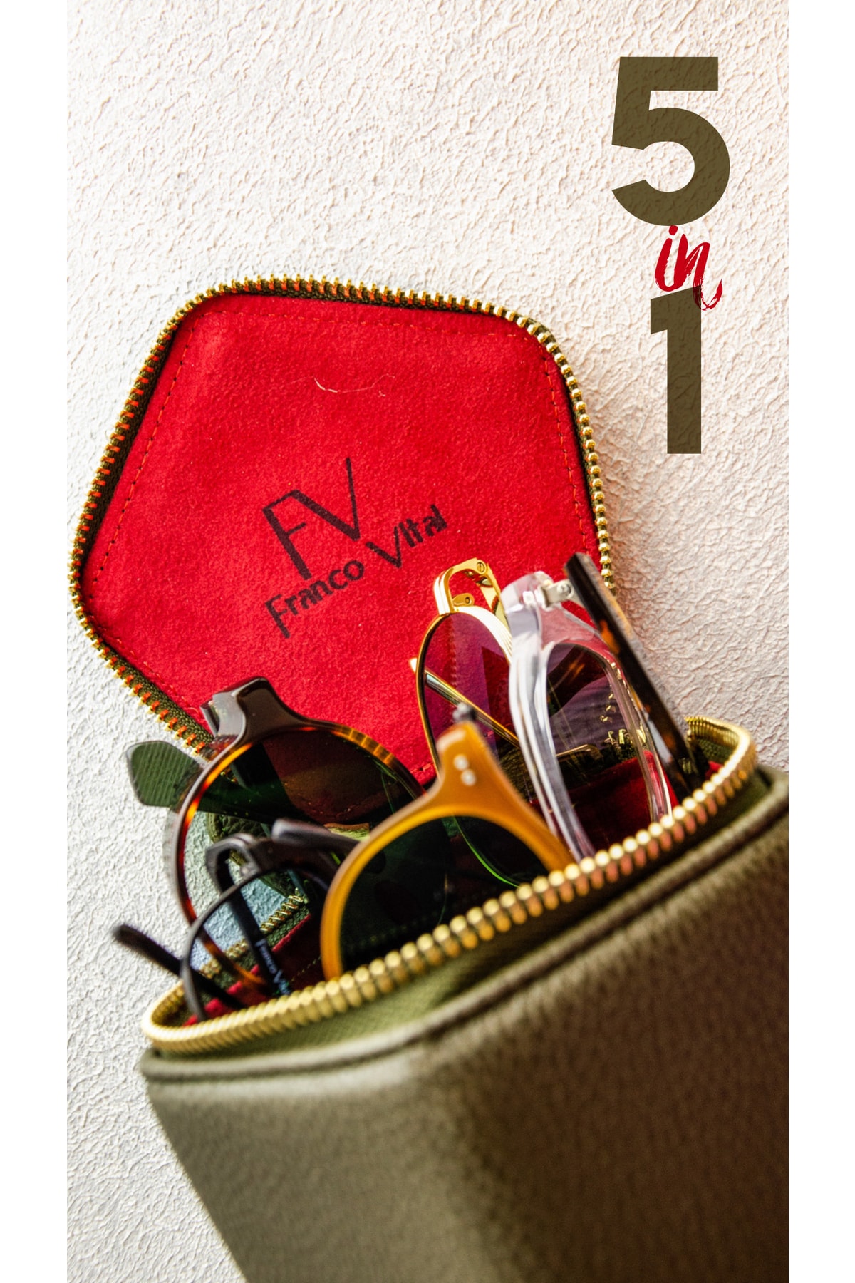 5 adet gözlük için yeterli alan sağlayan geniş iç hacmiyle pratik bir saklama çözümüdür