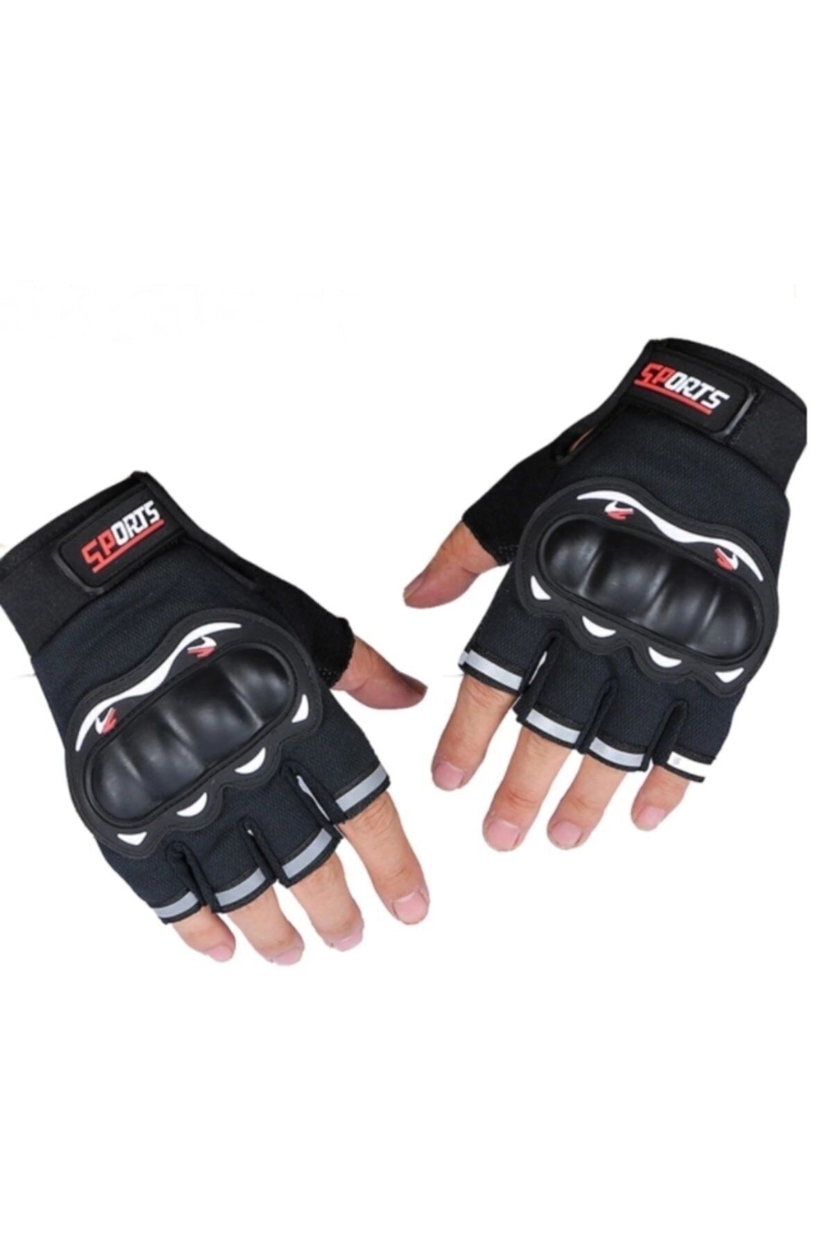 Unisex Korumalı Yarım Bisiklet Motorsiklet Eldiveni Parmaksız Reflektörlü