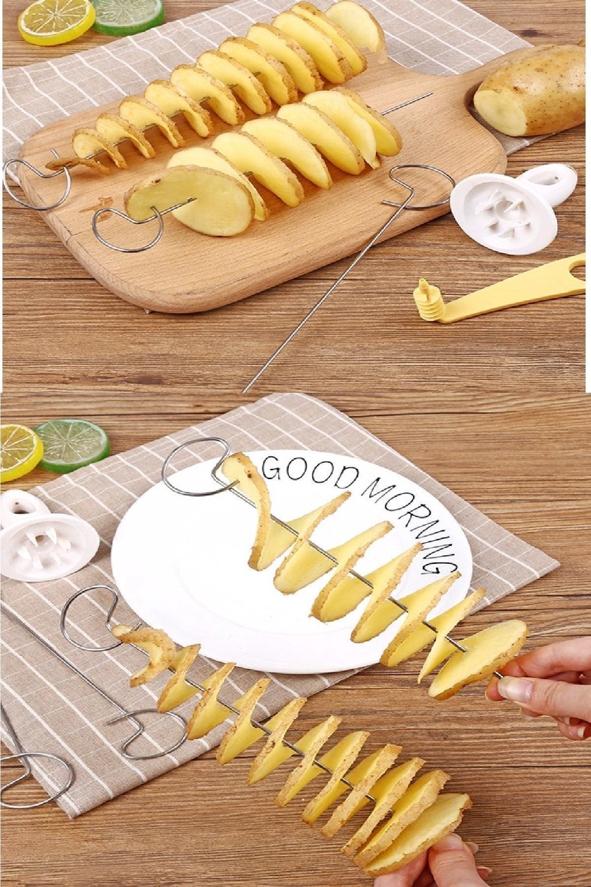 Spiral Patates Dilimleyici Aparat Çubukta Patates Cips Yapma Spiral Patates Dilimleyici Çubukta Patates Cips Yapma Patateslerinizi Farklı Bir Şekilde Kesip, Servis Edin! Patates Kızartmasını Sevenler Spiral Patates Kızartmasına Bayılacaklar.