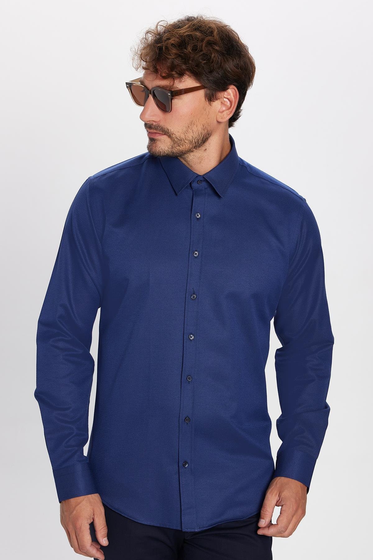 Modern Slim Fit Uzun Kollu Pamuklu Kolay Ütü Armürlü Erkek Gri Gömlek