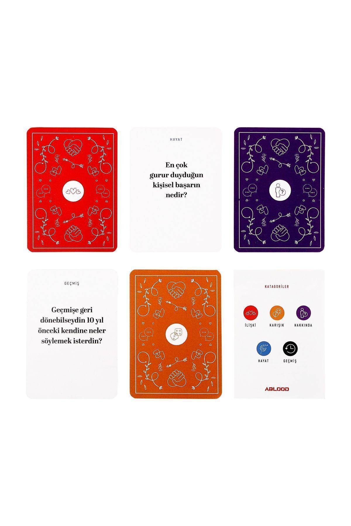 - Romantik ilişkilerde daha derin iletişim kurmak istiyorum isteyen çiftler için özel olarak tasarlanmış, 100 farklı sorudan oluşan kart seti.