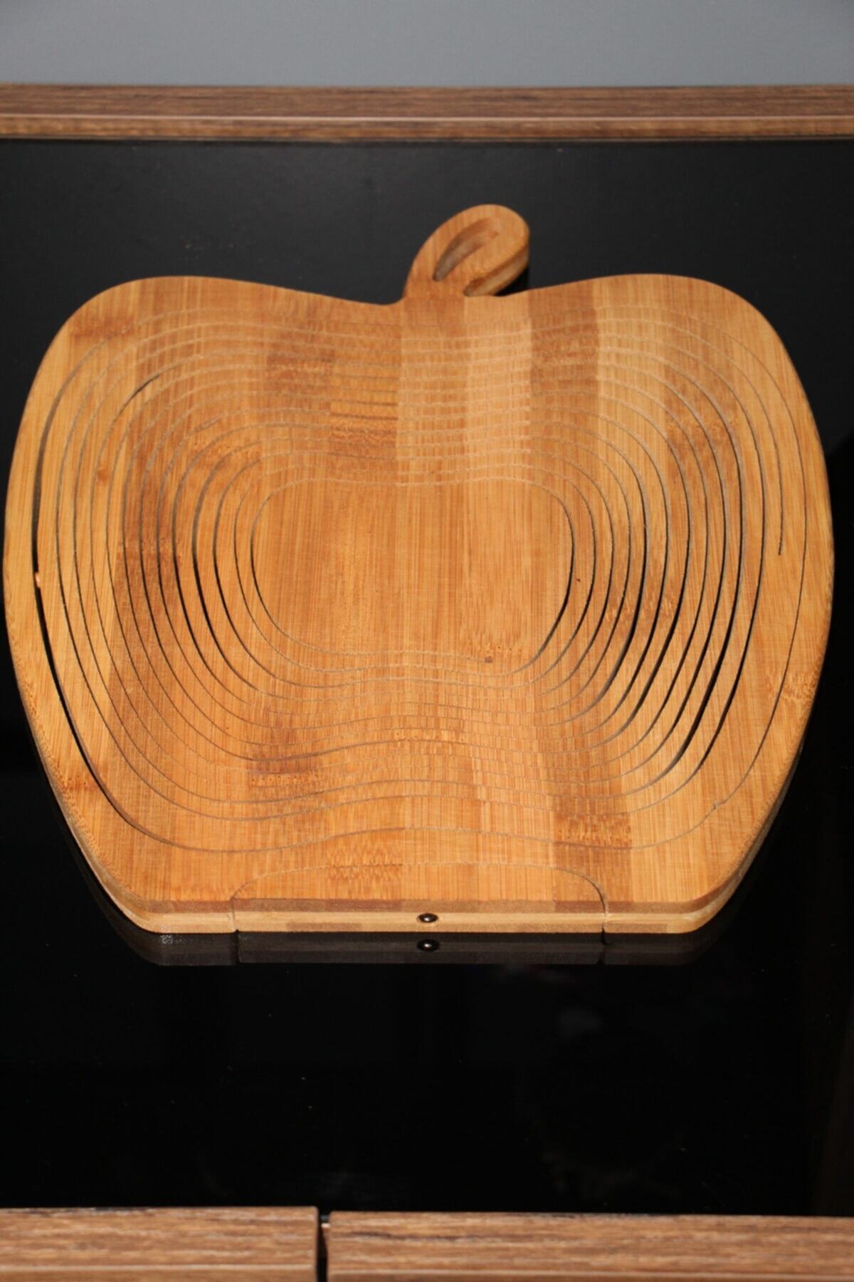 Bambu Elma Meyve Sepeti Kesme Tahtası Katlanır Meyvelik Nihale Sıra dışı tasarım, doğal, şık, sağlıklı Bambu Elma Model Meyvelik Katlanır Meyve Sepeti Akordeon Tasarımlı Meyve Sepeti Sıra dışı tasarımı ile evinizde, işyerinizde kullanabileceğiniz, sevdiklerinize hediye edebileceğiniz şık, tarz, dekoratif elma meyve sepeti kesme tahtası.