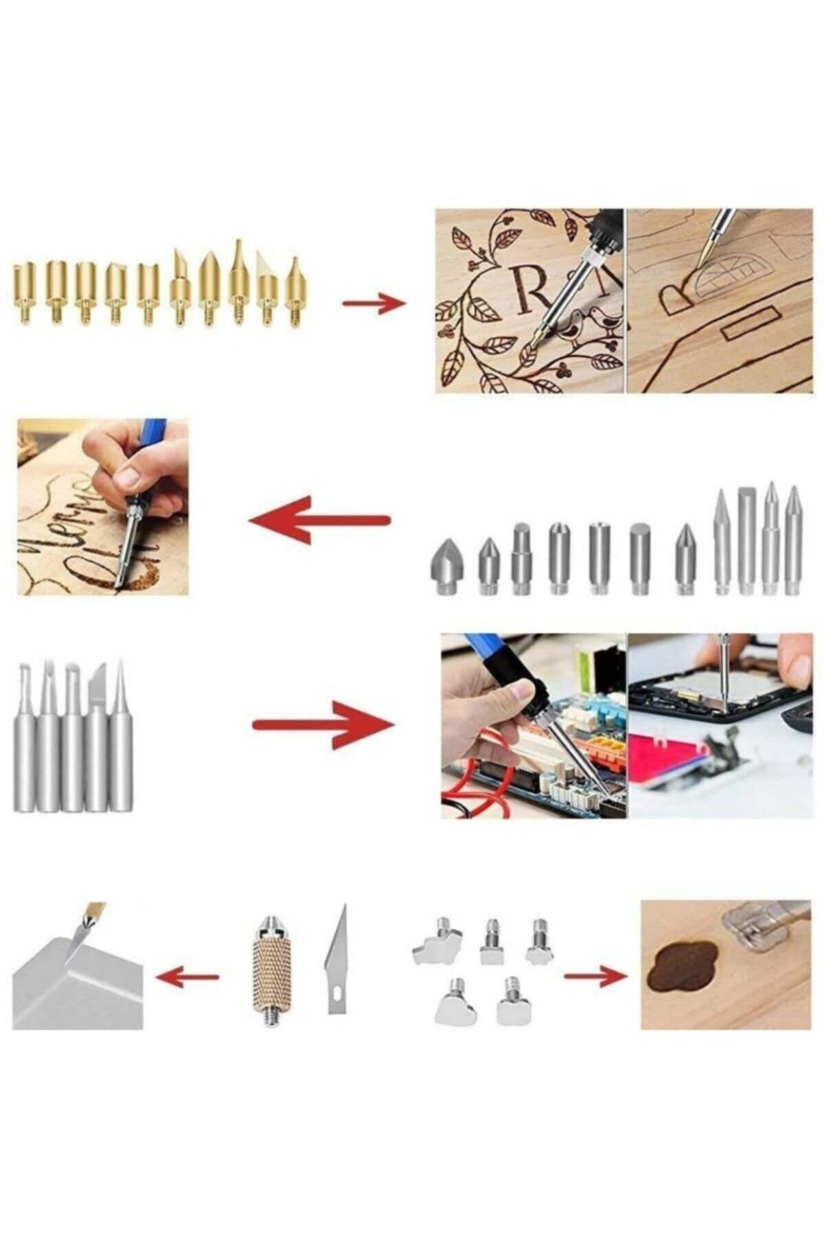 Ahşap yüzeyler üzerinde desen oluşturma, yazı yazma, şekil verme veya sanat eseri tasarlamak isteyen kullanıcılar için bu uçlar büyük avantaj sağlar.