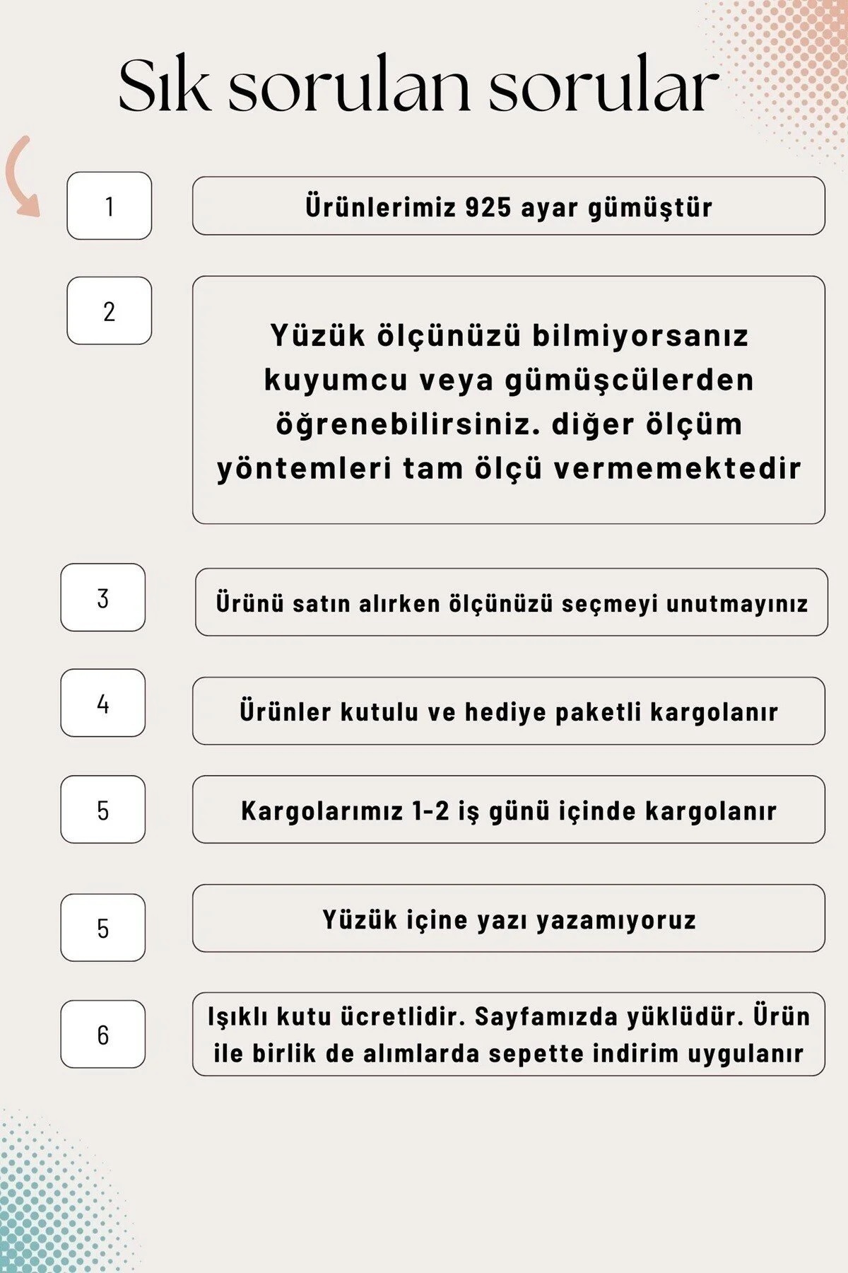 * 925 ayar gümüştür * 3,5gramdır * kutulu paketli gönderilir gönderilir ,* altın kaplama ve rose renkleri günlük kullanımlarında renkleri beyaza dönebilir * ölçünüzü bilmiyorsanız mutlaka kuyumcu veya gümüşcükerden öğrenmelisniz diğer ölçümler hatalı çıkmaktadır * ürünleri kullanmadığınız da mutlaka hava almayacak şekilde saklayınız * gümüş aprlatma bezi beli aralıkla silip temizleme işlemi yapabilirisniz * tüm soru görüşleriniz için bize ulaşınız