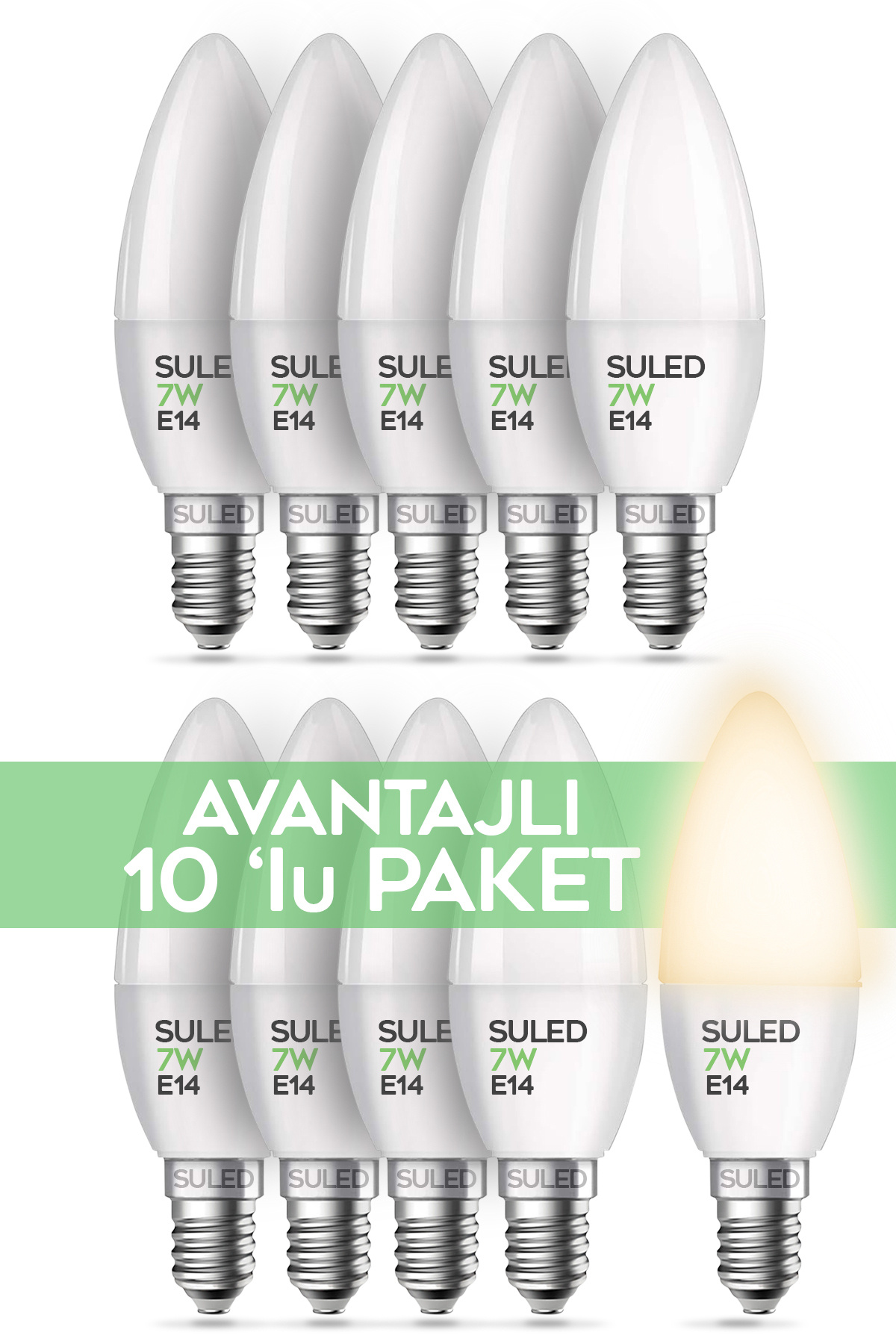 10 adet mum buji ampul içeren paketiyle birden fazla avize veya abajurda kullanım imkanı sağlar