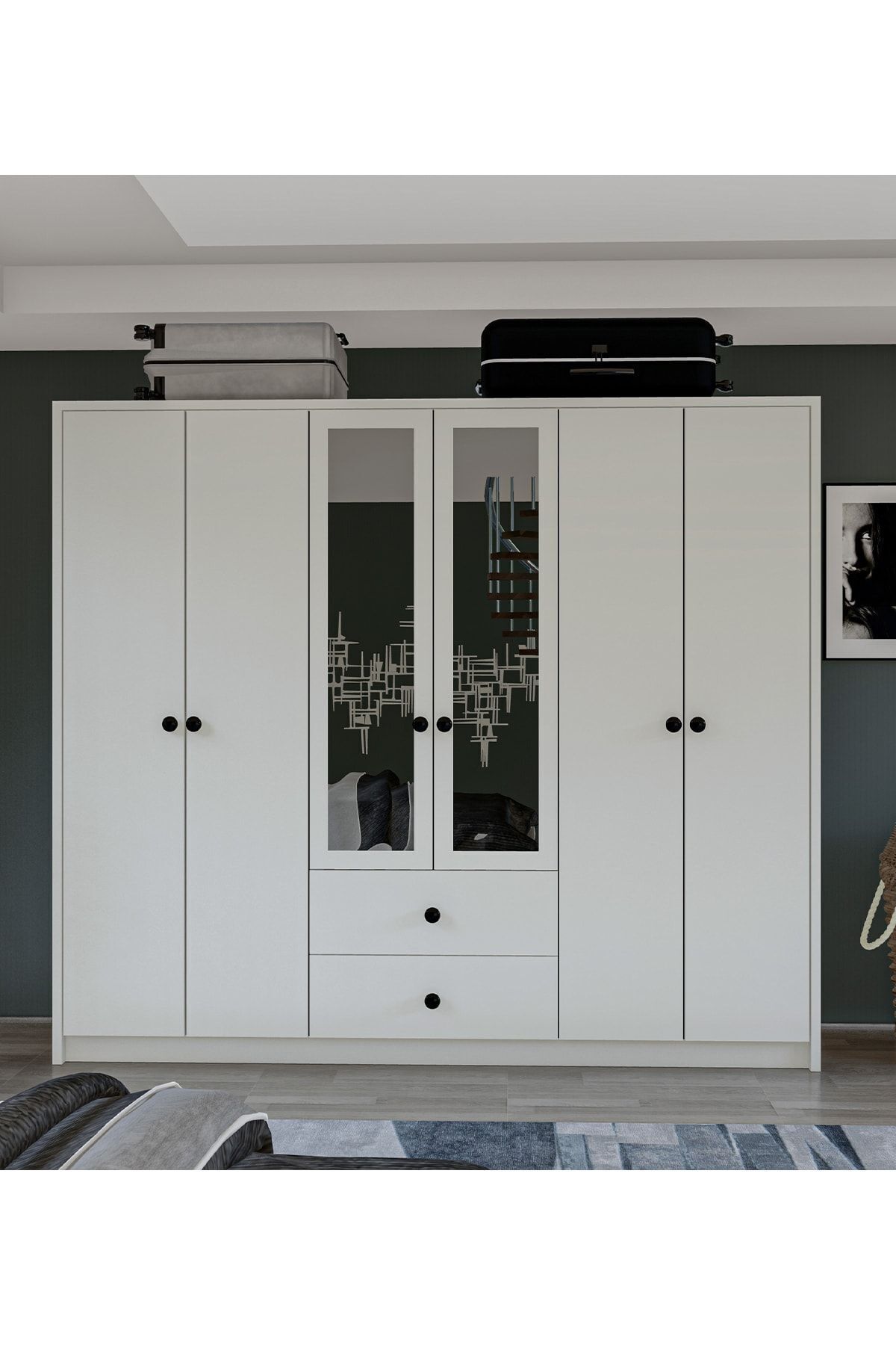 Derin ve kullanışlı iç mekan sayesinde elbiselerinizi kırıştırmadan ve sıkıştırmadan dayanıklı çelik askılığa üst rafa eşyalarınızı koyabilir, alt bölüme çanta bavul, ayakkabılarınızı rahatlıkla koyabilirsiniz.Gardırobunuzun altında parke, halı veya sert zeminlerde takılmadan durması için veya gerektiği zaman çekebilmek için dayanıklı, geniş, ve estetik pabuçlar kullanılmıştır.