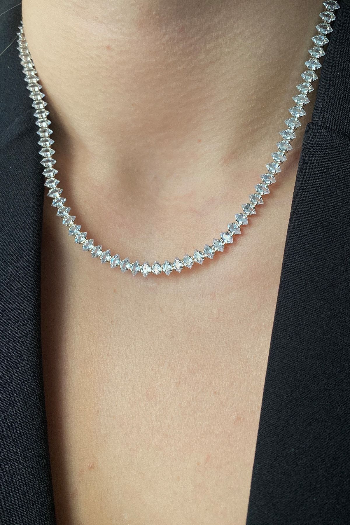 Zarif su yolu tasarımı, kolyenin her açıdan farklı bir ışık altında parlamasını garanti eder