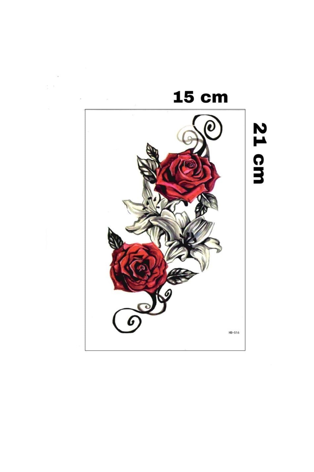 Mecit tuhafiye büyük gül geçici dövme Büyük gül dövme ebat 15x21 cm'dir