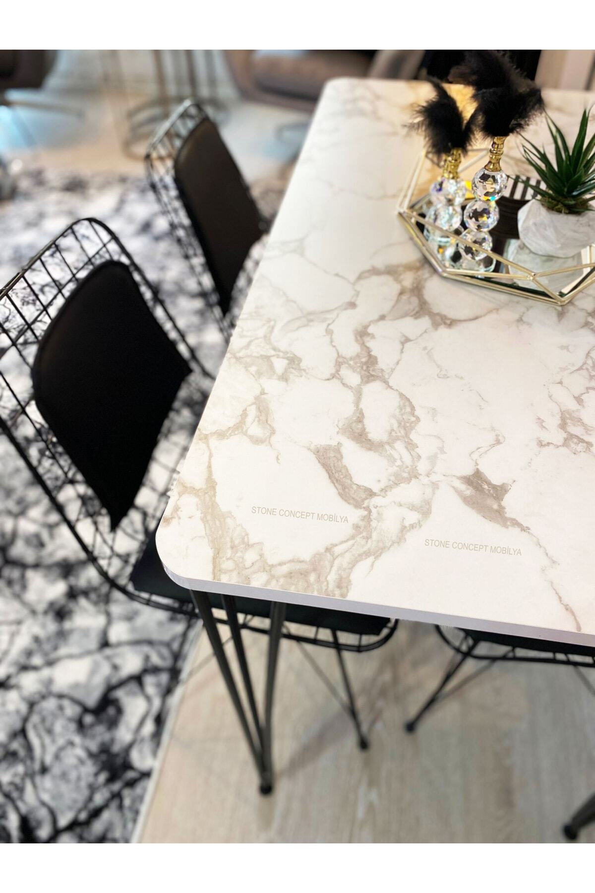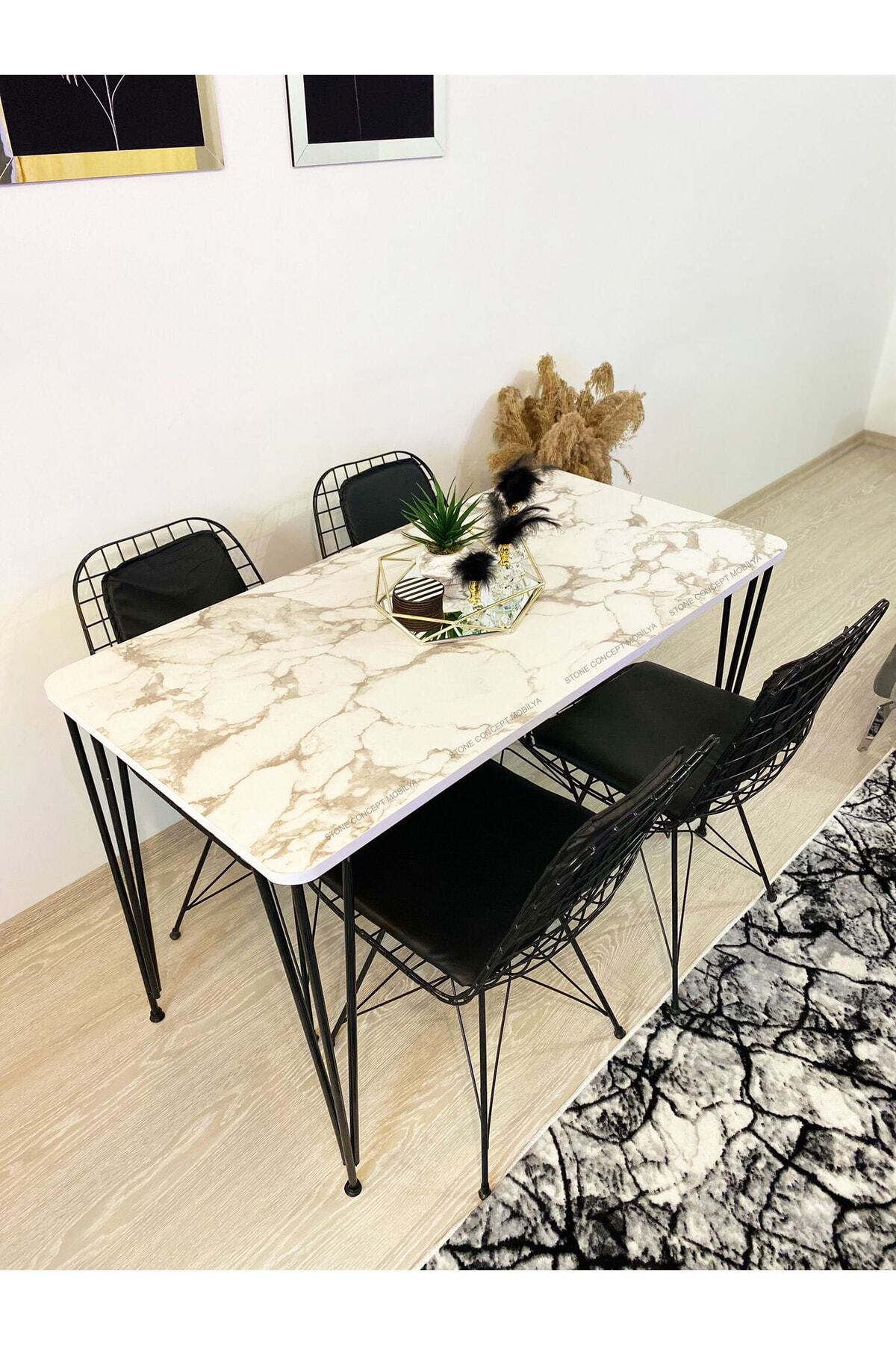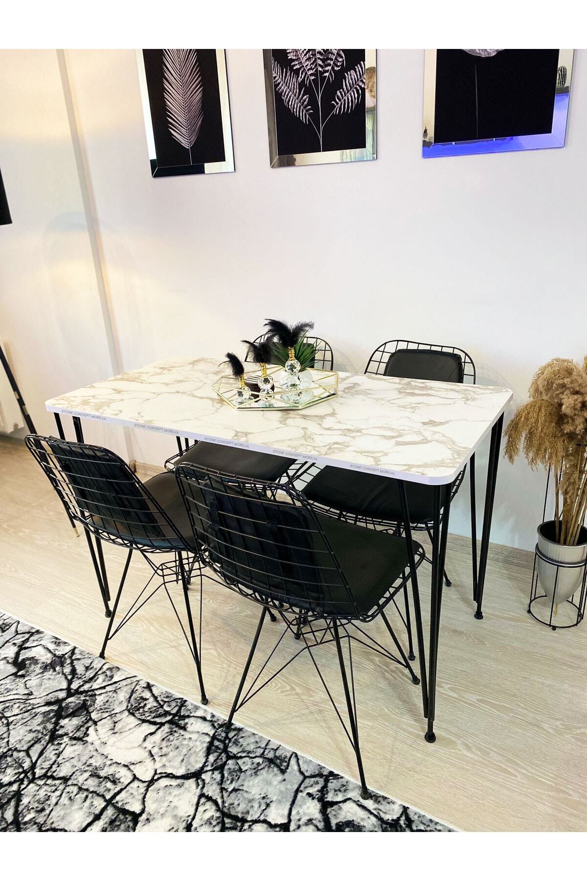 Ürün içeriği 1 adet 120*60 masa tablası 4 adet ayağı ve 4 adet tel sandalyeden oluşmaktadır.