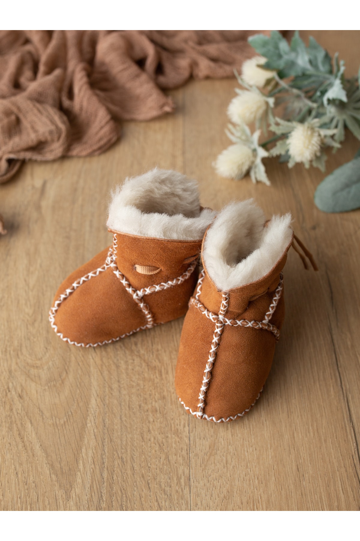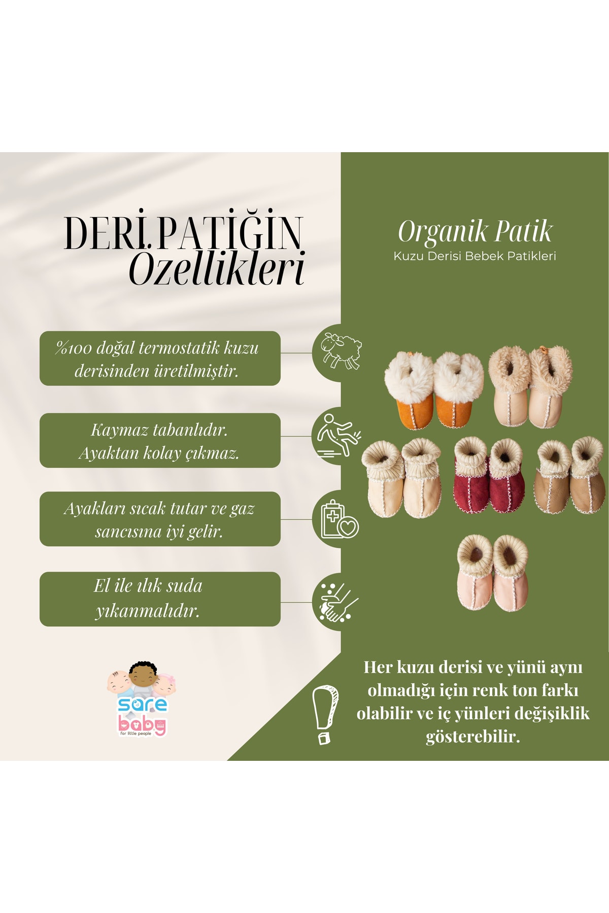 Dış kısmı özel kuzu derisinden, iç kısmı yumuşacık kuzu yününden tasarlanmıştır.