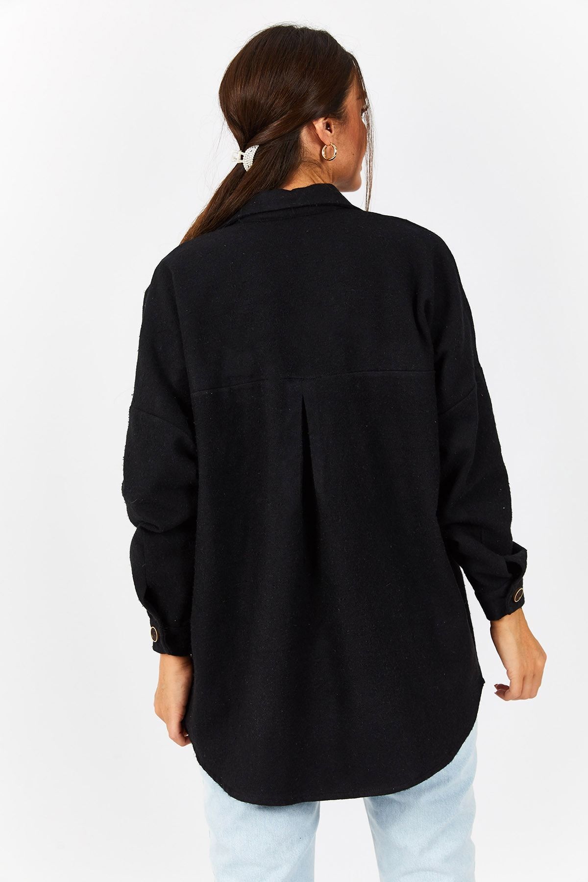 Gömlek yaka detayı ile klasik ve resmiyetten uzak, casual bir tarz yaratır