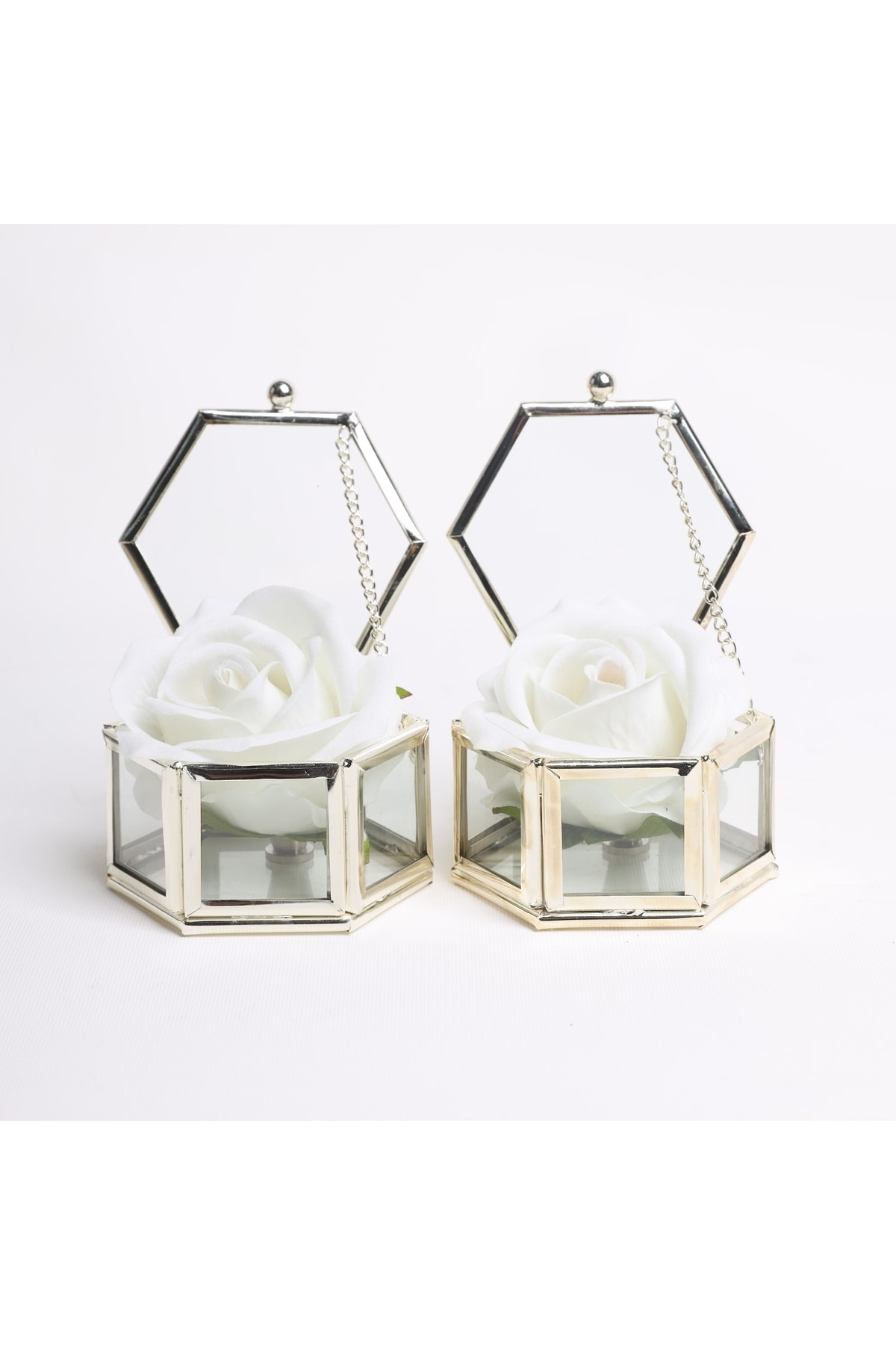 2 adet altıgen gümüş cam yüzük yükseltici (yapay güller dahil) - ( 7.5* 4.5 cm )