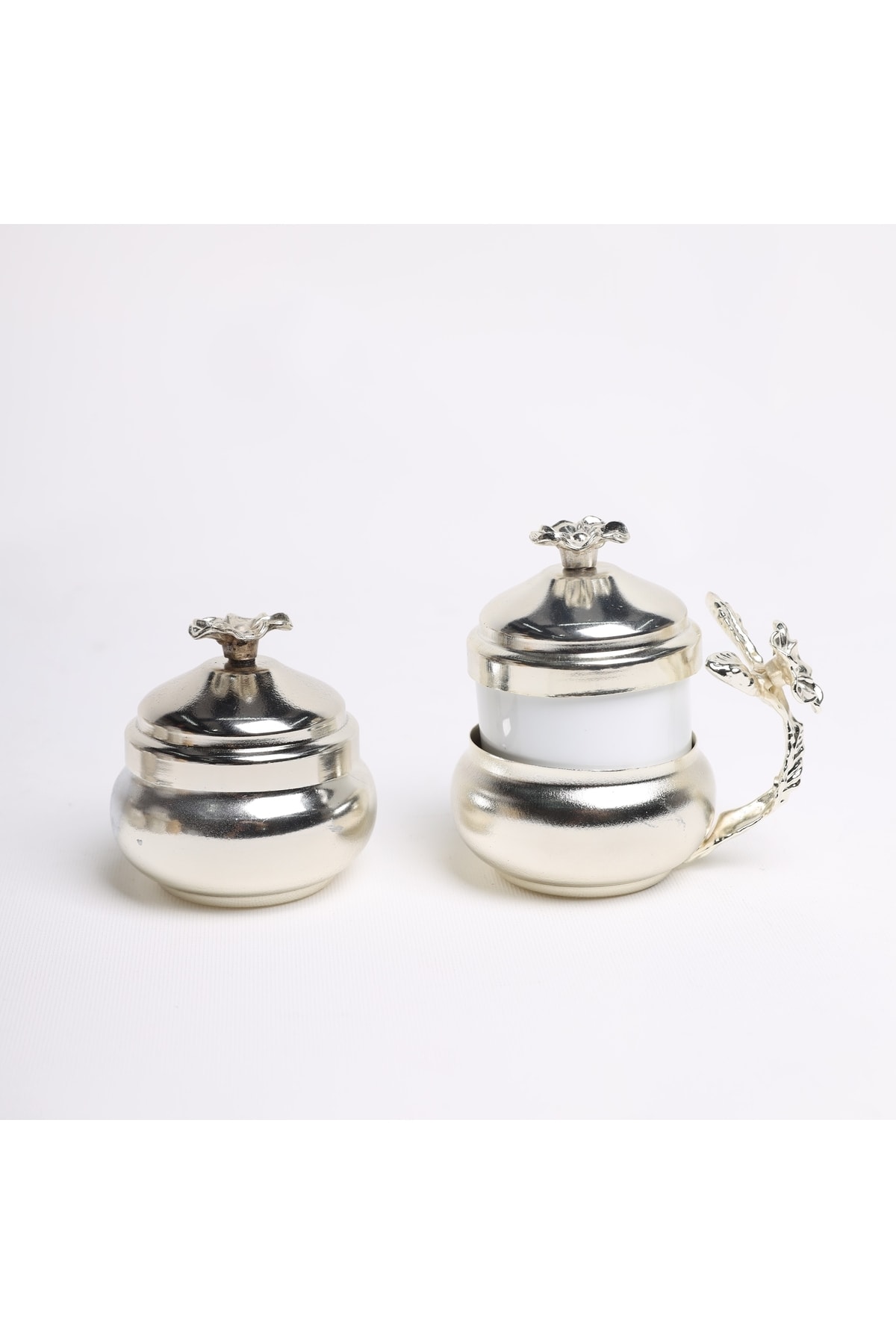 Gümüş Aynalı Cam 4 Kulplu Dekoratif İkili Söz Nişan ve Damat Kahve Fincan Tepsi Setinin İçerik ve boyutları