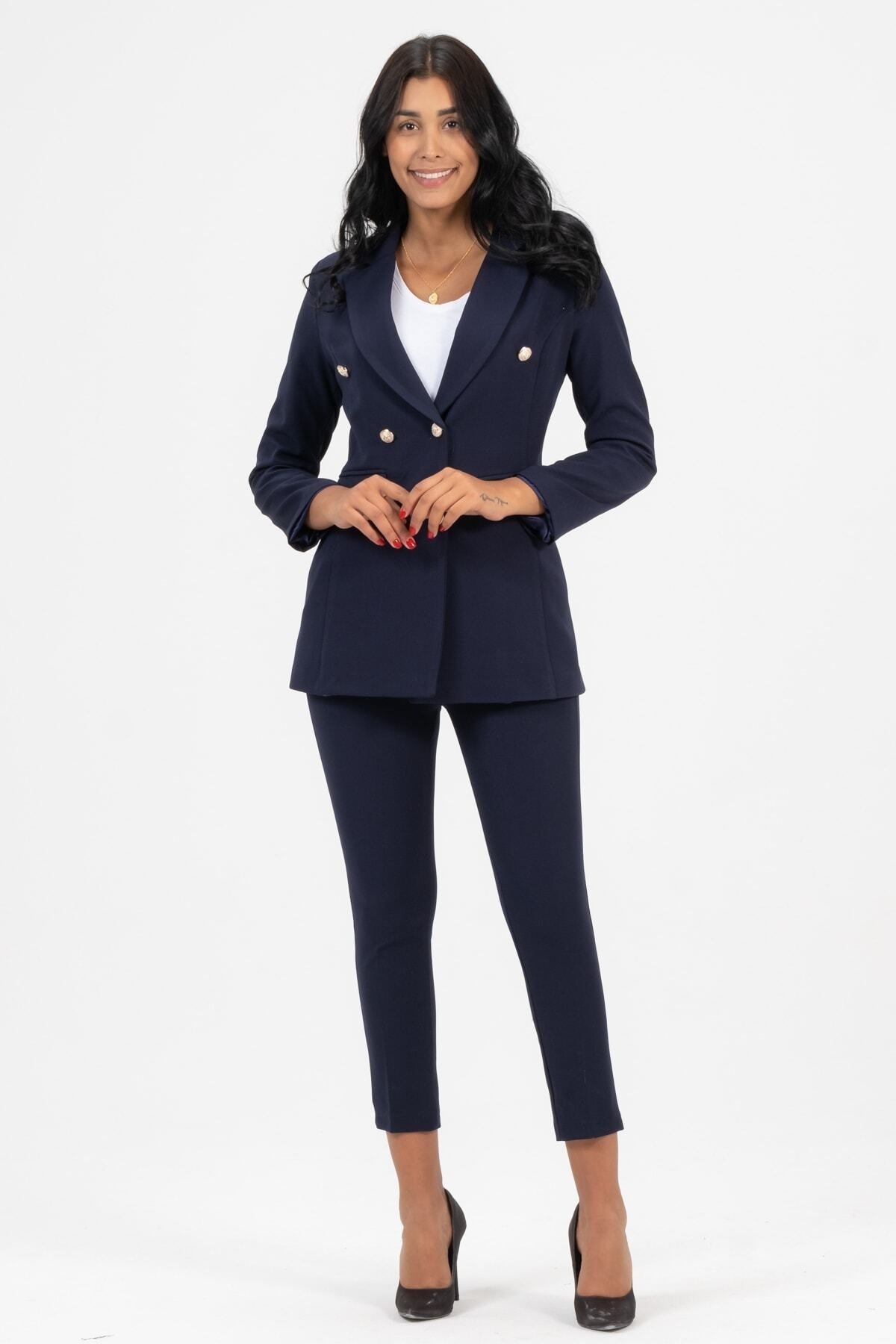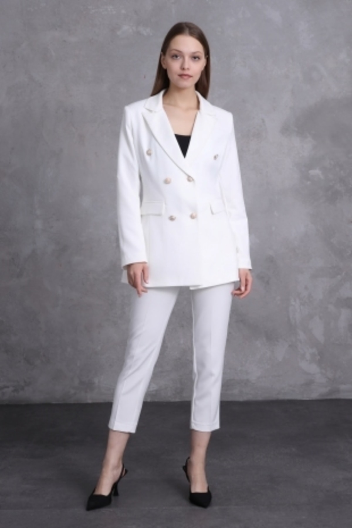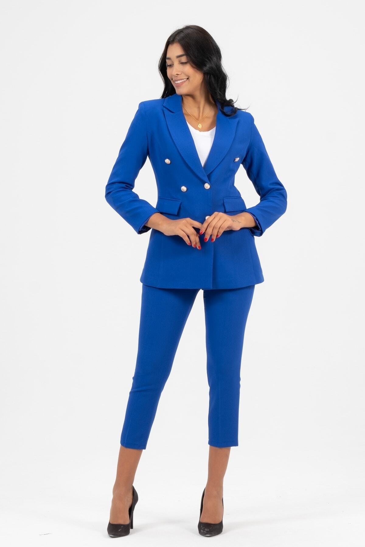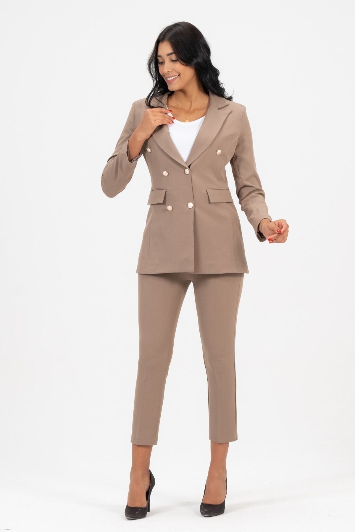 - Şık ve gece ortamları için ideal, zarif bir görünüm sunan blazer ceket ve havuç pantolon takım