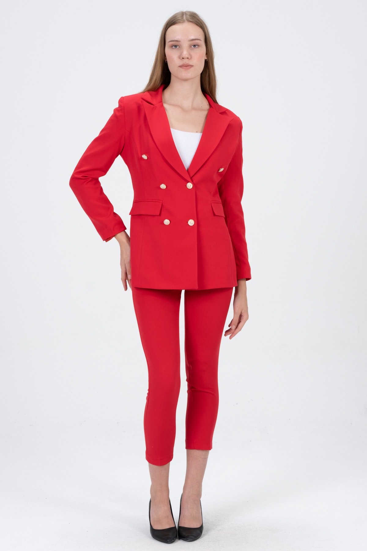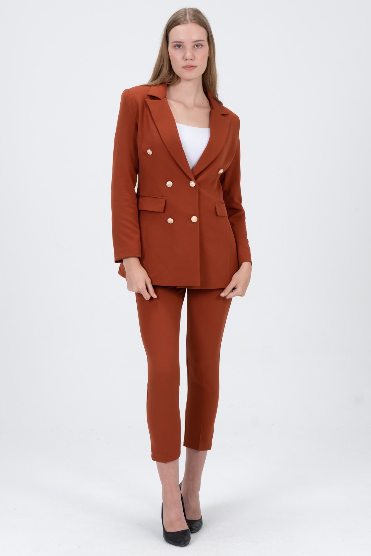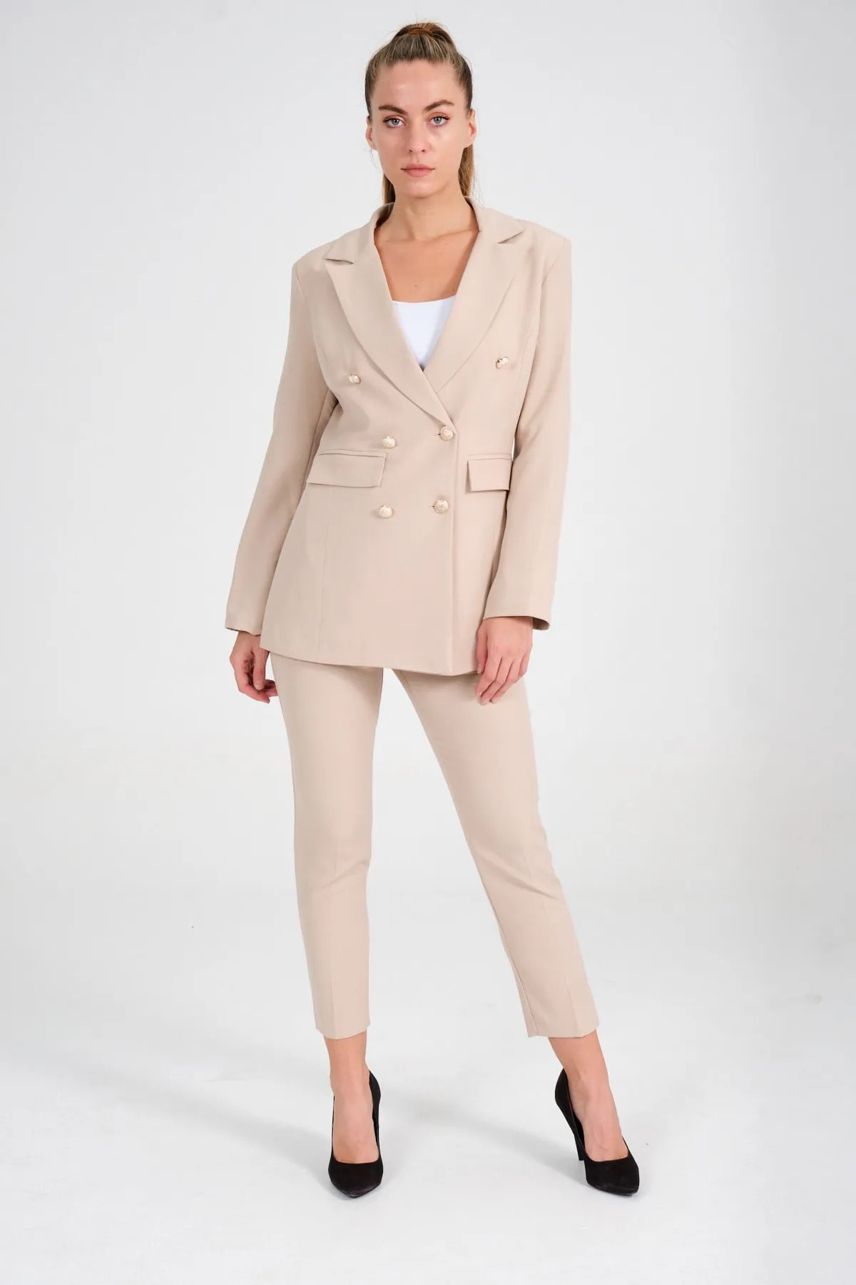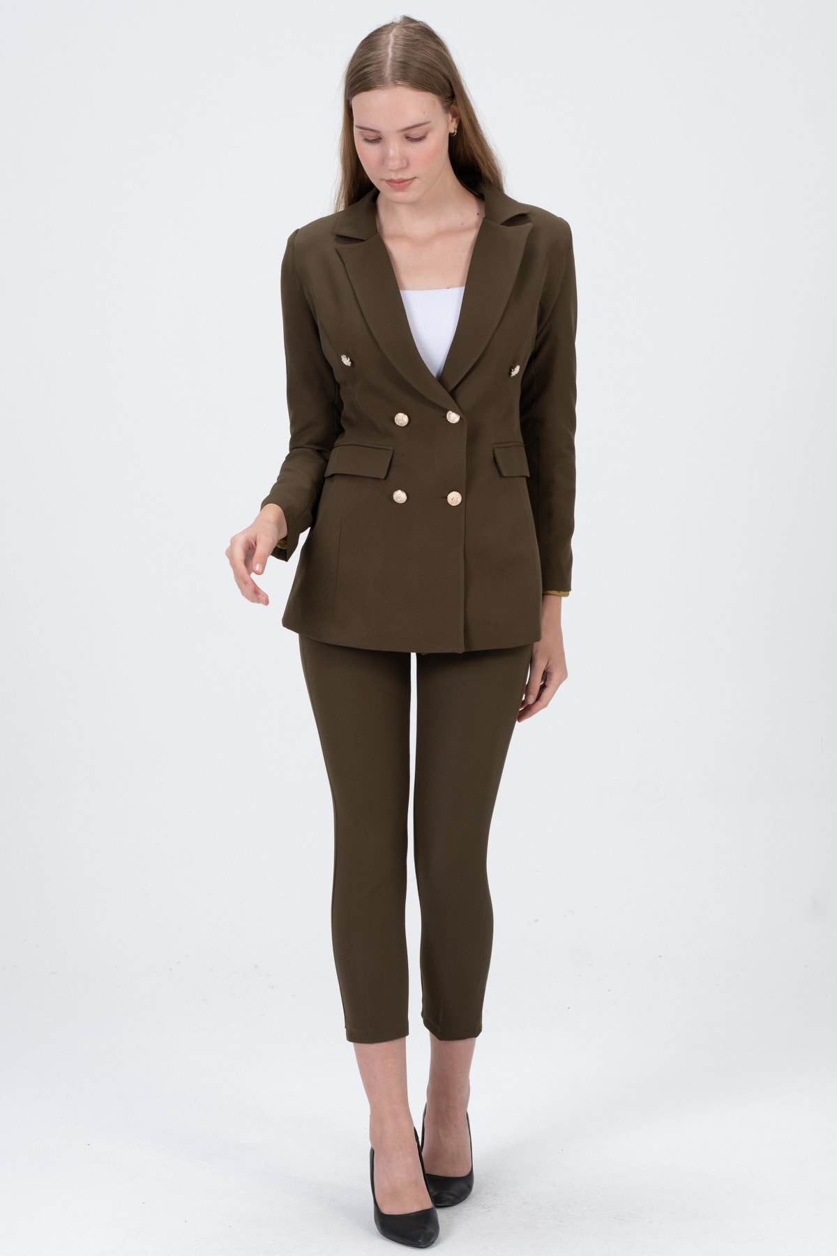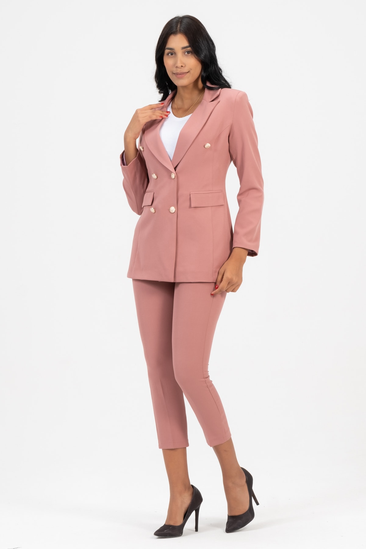 - Şık ve gece ortamları için ideal, zarif bir görünüm sunan blazer ceket ve havuç pantolon takım
