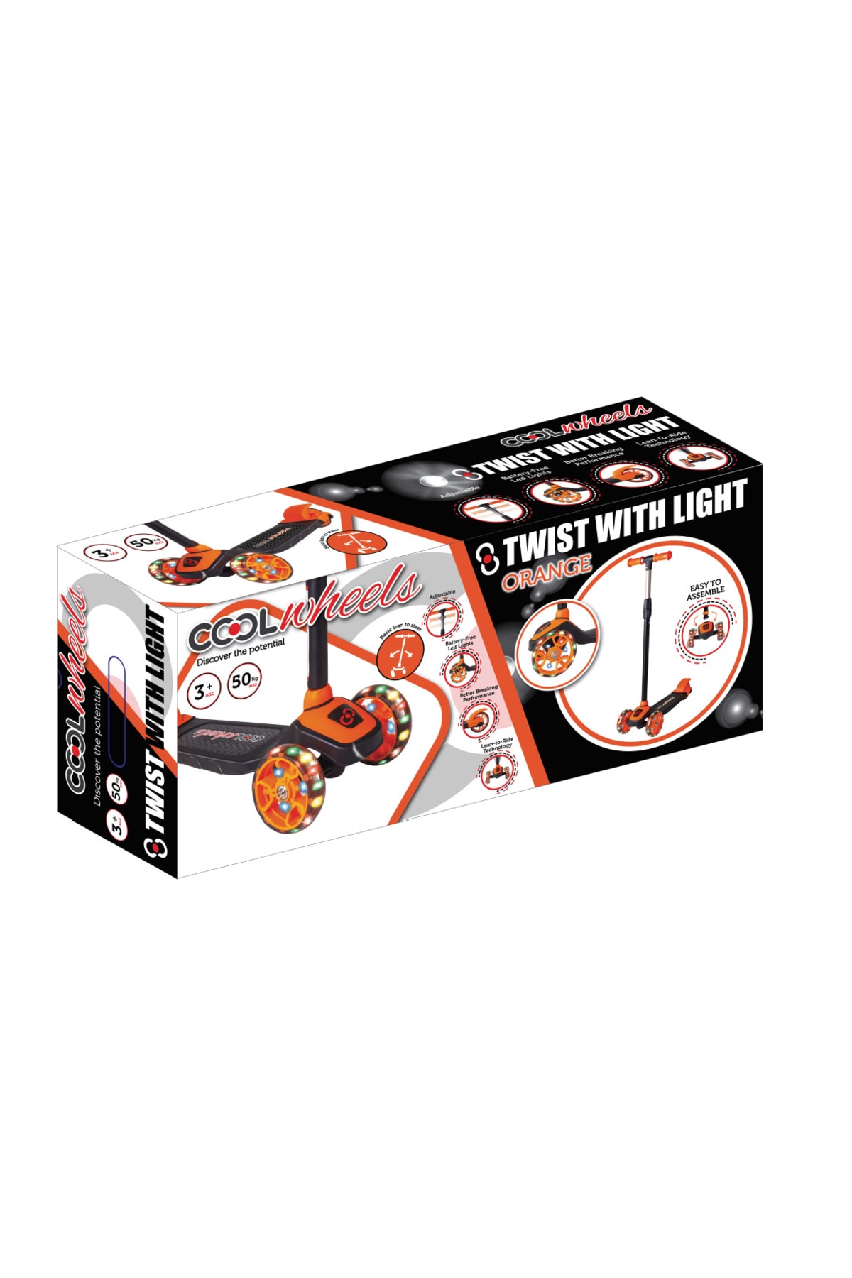 COOL WHEELS 3 Tekerlekli Led Işıklı Twist Çocuk Scooter RENK: TURUNCU Led Işıklı Ön Tekerlekler Taşıma Kapasitesi: Max 30 kg 3 Kademeli Yükseklik Ayarı (65cm-75cm) Kolay Kurulum Silikon Tekerlek +3 YAŞ 3-4-5 Yaşlara Uygundur Önemli Not: Twistable Scooter'larda Yön Tayini Direksiyonu Yana Yatırarak Sağlanmaktadir.