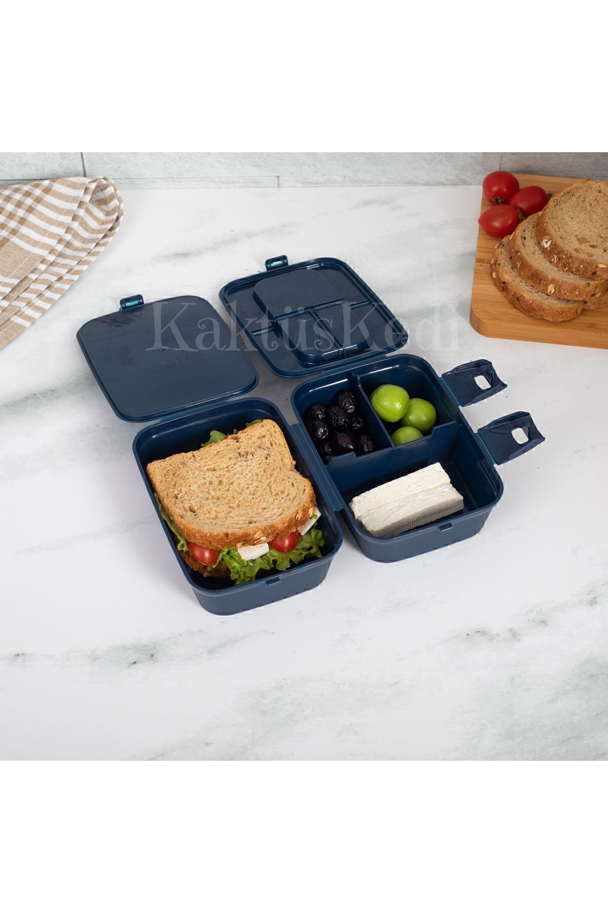 4 bölmesi sayesinde yemekler birbirine karışmaz. Ön kısmında kilitli mekanizması bulunur,bu sayede açılma yapmaz ve yiyecekler dökülmez.
