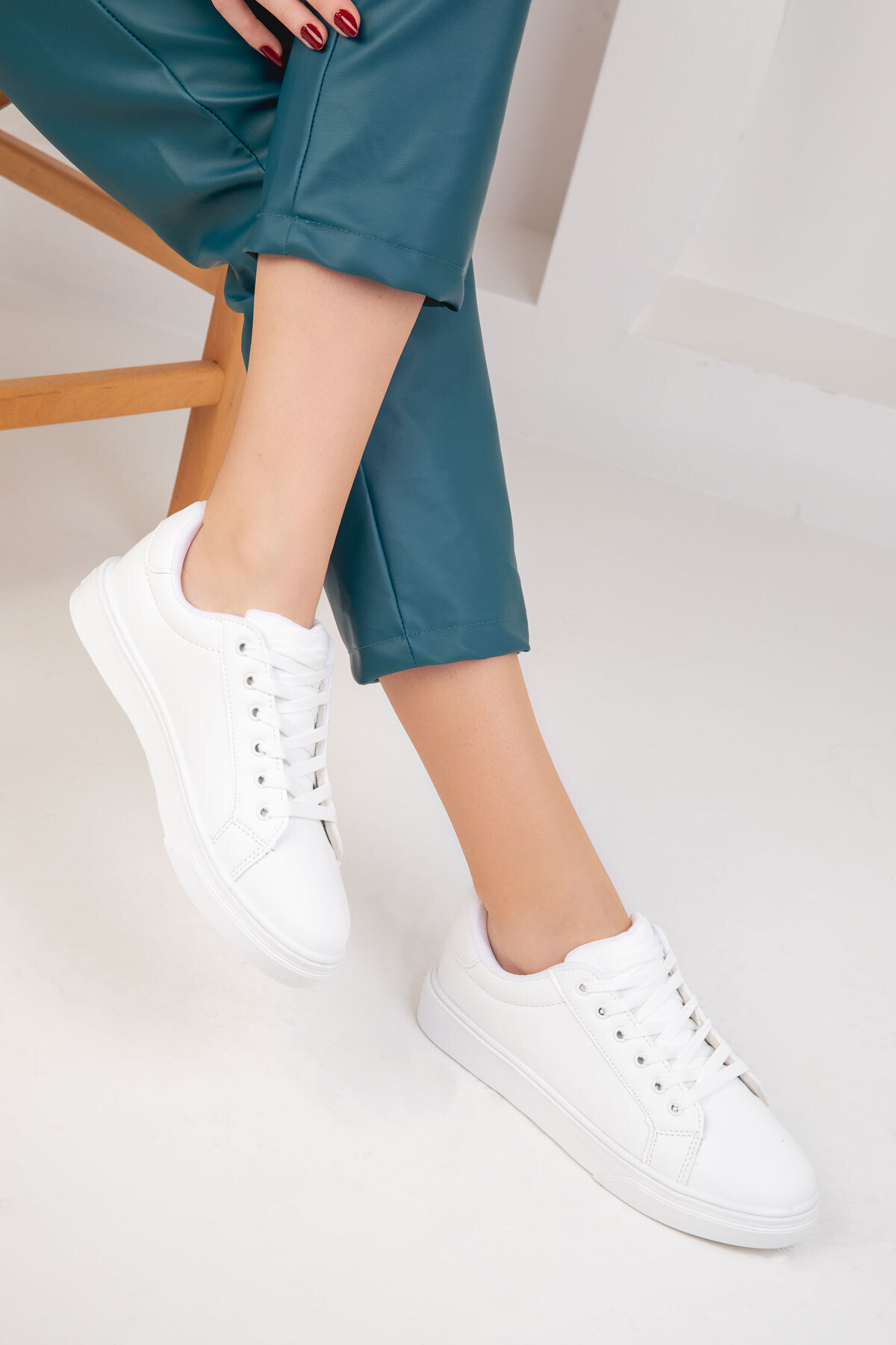 Yumuşak dokusu ve şık tasarımıyla dikkat çeken beyaz sneaker, günlük kullanım için idealdir