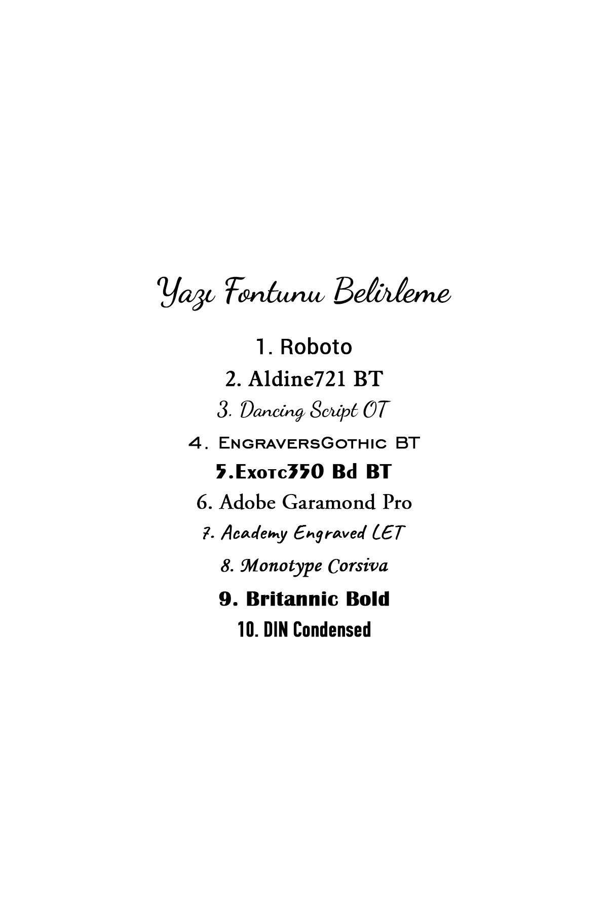 İsimliğe yazılacak yazı fontunu ve şablonu görseller içinden inceleyerek tabela tercihiniz ile beraber ad soyad ve varsa ünvan bilgilerinizle bize yazmayı unutmayın.