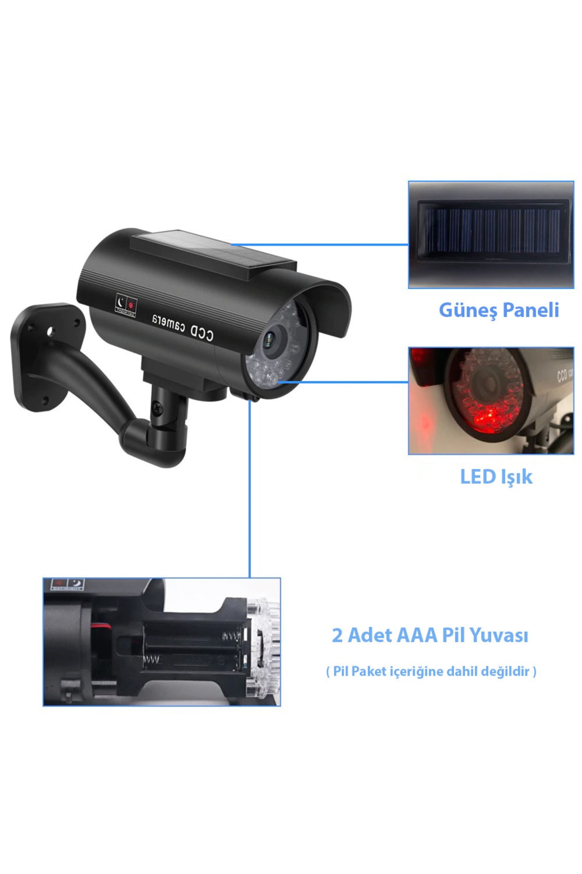 DailyTech Güneş Enerjili Sahte Fake Ledli Güvenlik Kamerası Caydırıcı Neden seçmelisiniz? Kolay kurulumu ve Yanıp sönen Kırmızı LED ışık sayesinde gerçek bir kameradan ayırt edilmesi imkânsız olan bu sahte kamera sizleri ve sevdiklerinizi kötü kişilerden ve hırsızlardan caydırıcı özelliği ile korumayı sağlayacaktır. Özellikleri 1. Son derece gerçekçi sanal kameralar evinizin, mağazanızın ve deponuzun etrafındaki suçları durdurabilir