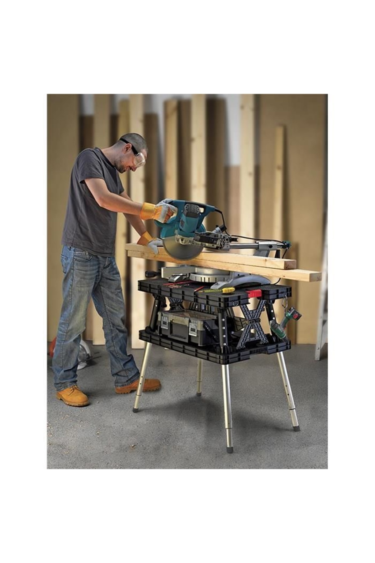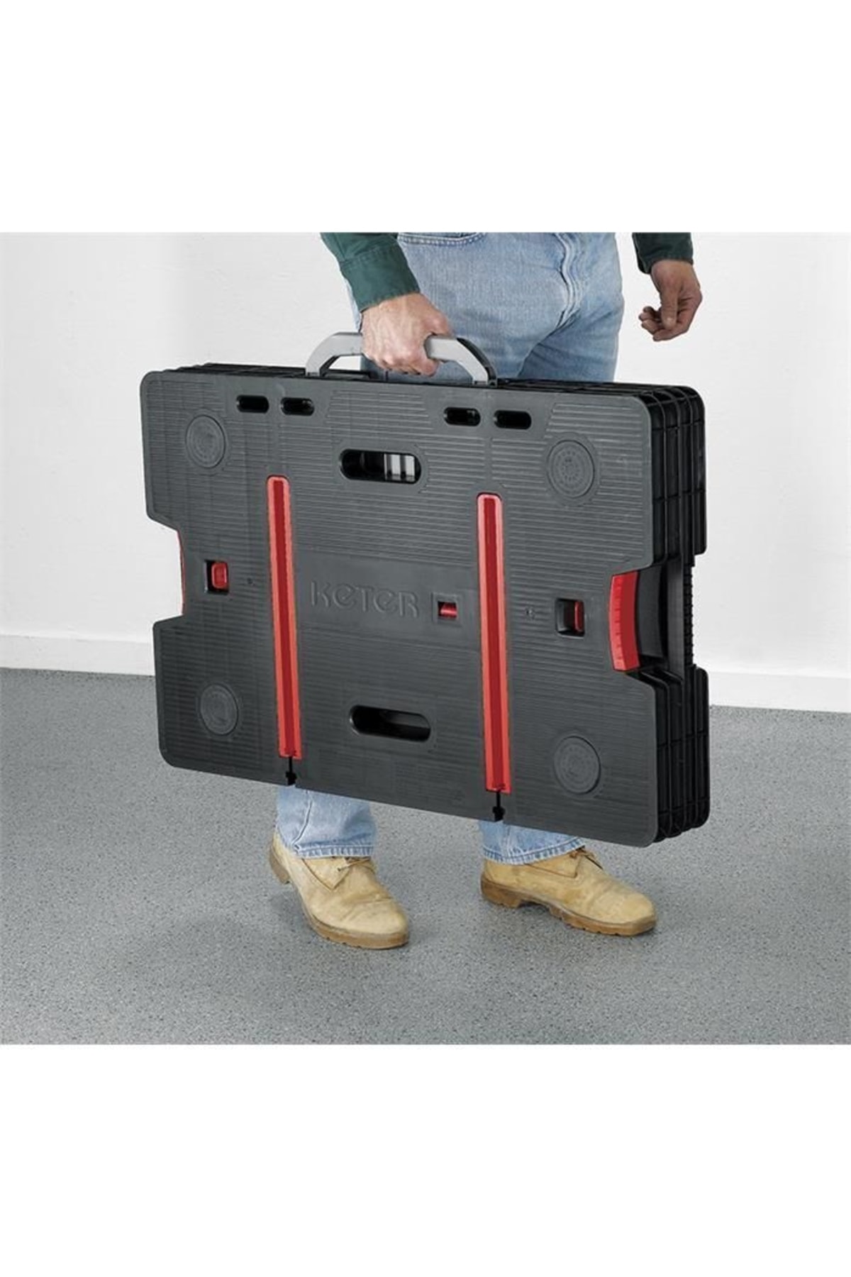 KETER Master Pro Portatif Çalışma Tezgahı Kolay taşıma için entegre tutamaklı portatif ve hafif çalışma masası Depolama alanından tasarruf etmek için katlanır tasarım Montaj gerekmez - 30 saniyede kurulum ile zaman tasarrufu sağlar Hemen hemen her işe uyacak şekilde hem yatay hem de dikey olarak monte edilebilen 12 '' kelepçeler Profesyoneller için uygun bir iş istasyonu olan bu portatif katlanır çalışma masası, 30 saniyelik kurulum sağlayan akıllı bir tasarıma sahiptir Entegre tutamak ve hafif plastik malzemeler sayesinde taşıması kolaydır, çalışma masası bir işten diğerine veya garajdan bahçeye rahatça taşınabilir Ağır işlerde 1000 lbs ağırlık kapasitesi ile çeşitli türdeki projeleri idare edebilmesini sağlar Çeşitli gereksinimlere uyan iki adet entegre 12 ”kelepçe Sık kullanılan araçları çalışırken erişebilecekleri alt tepsiye yerleştirebilirsiniz Saklanması kolay olan bu masa, katlandığında 4,4 '' yer kaplarken tamamen uzatıldığında 33,7 '' lik bir alanda çalışma şansı veriyor