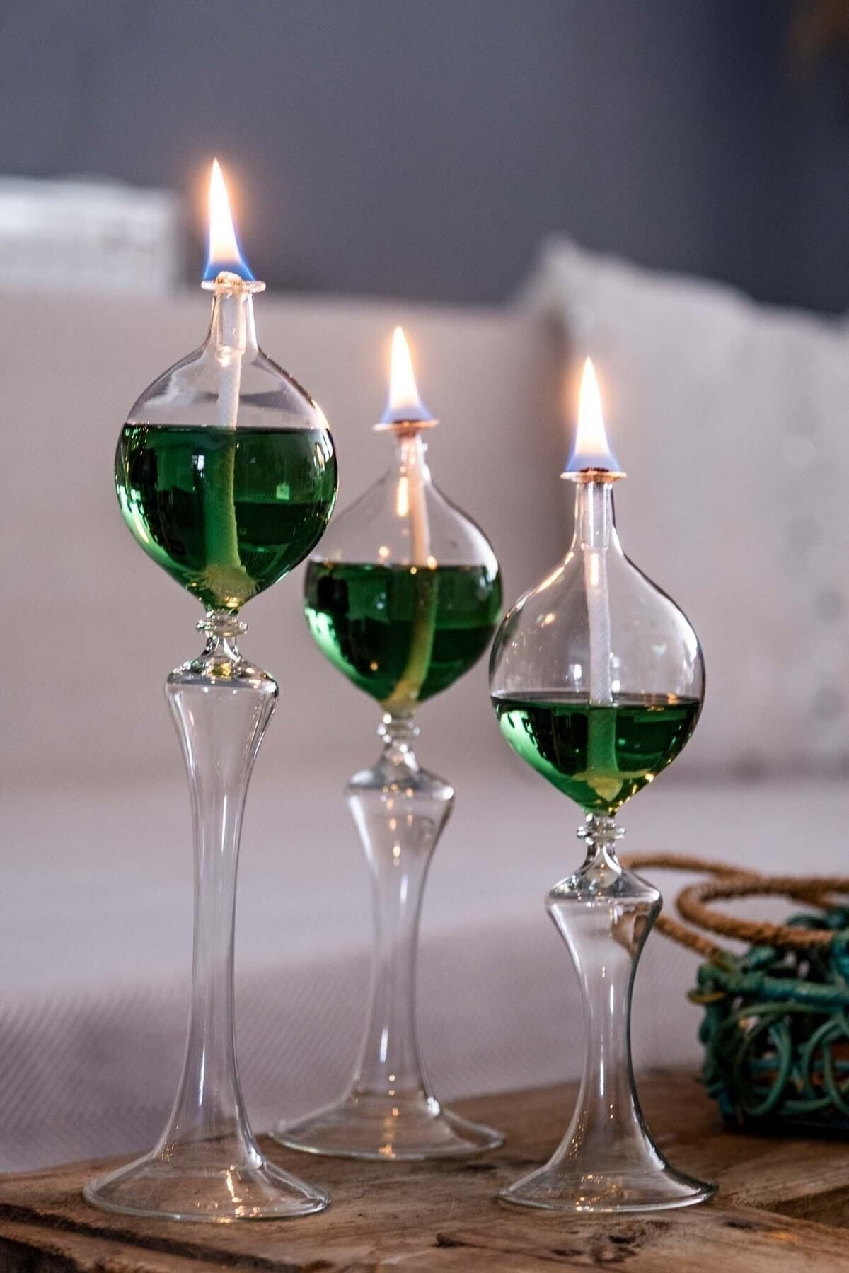 Ayaklı Drops Şamdan Cam Kandil 3'lü Set + Kandil Yağı